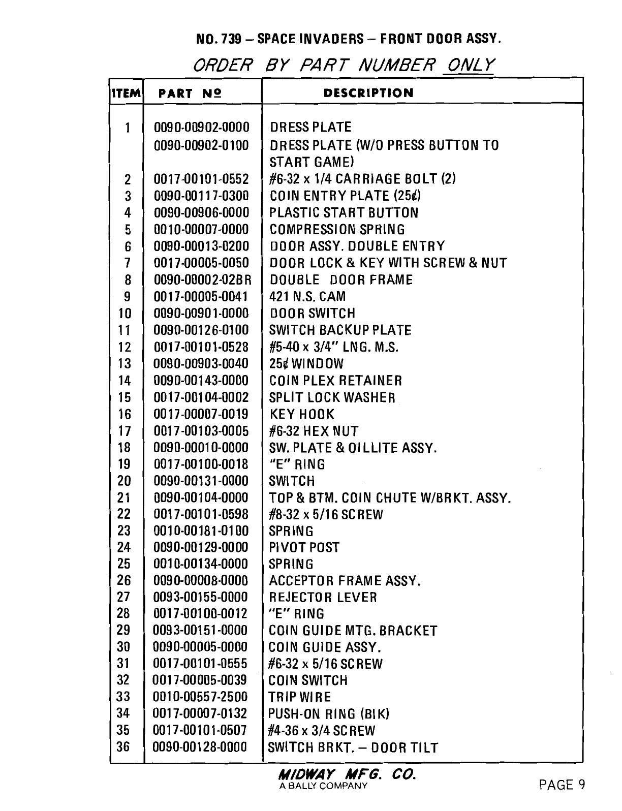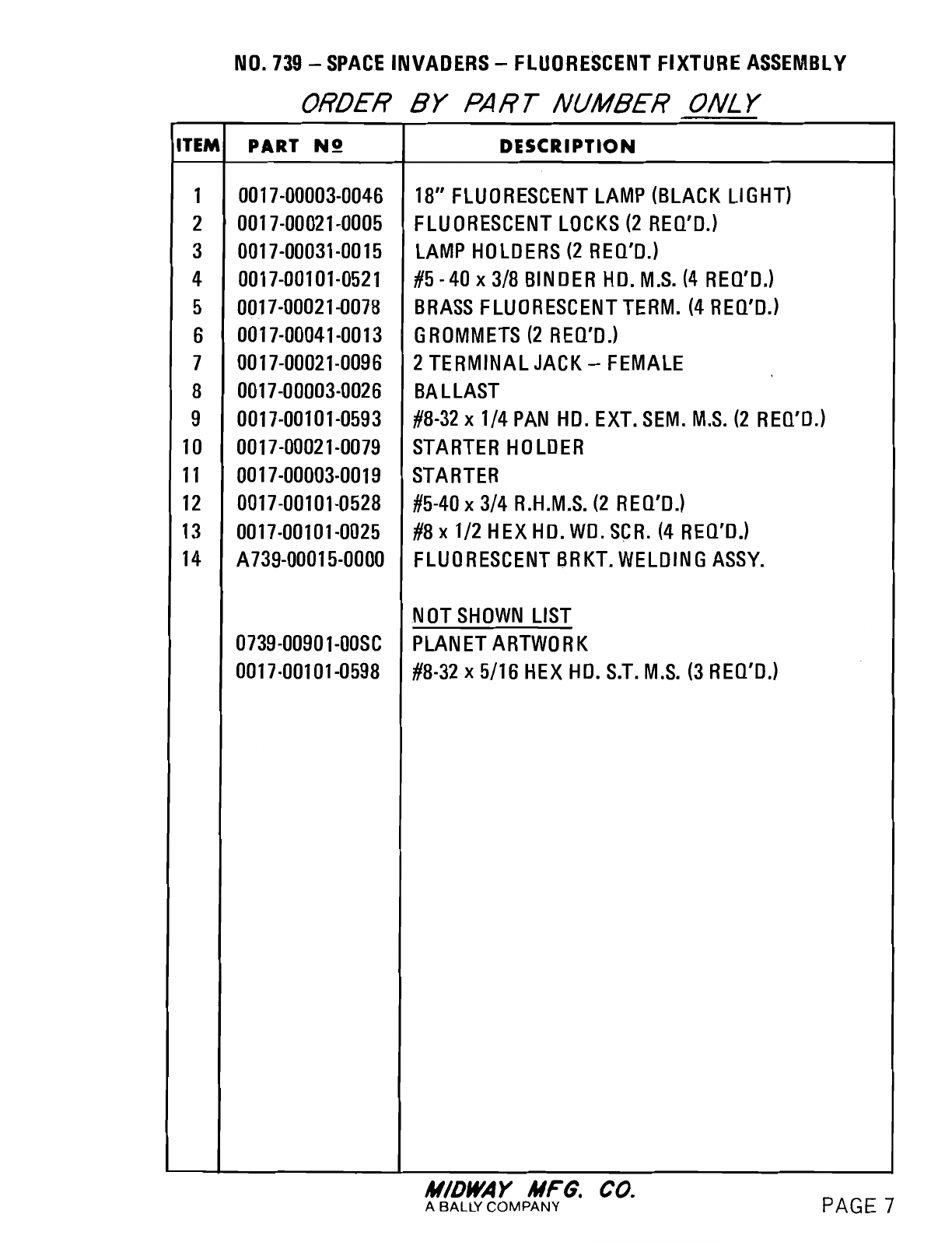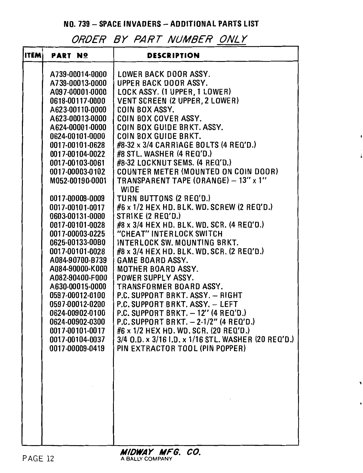 User Manual: Space_Invaders_Parts_Catalog_(Oct_1978)