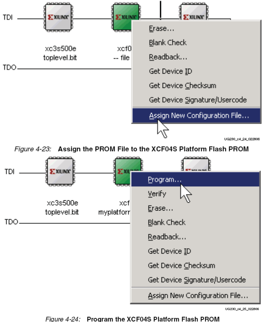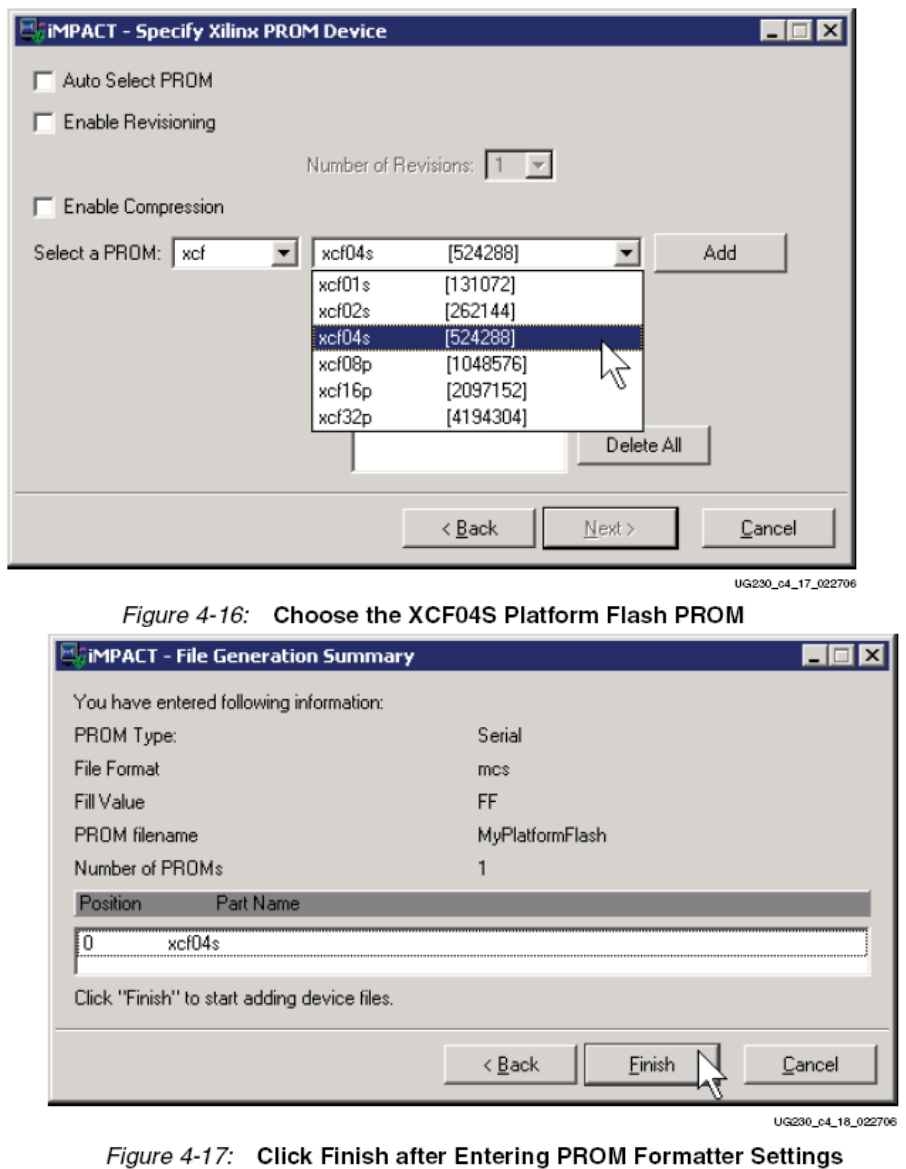 1)当FPGA为主串行配置模式(FPGA_M<2:0>=000)时,向XCF04S Platform Flash PROM提
