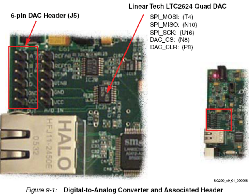 FX2扩展连接口;16)3个管脚扩展连接器;17)4个SPI-DAC转换器输出管脚;18)2个SPI带可