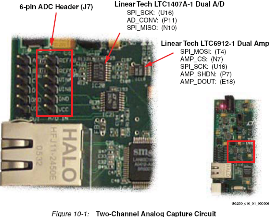编程增益ADC输入管脚;19)ChipScope™软件调试接口;20)带按钮的旋转编码器;21)8个