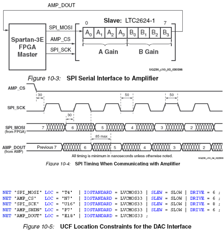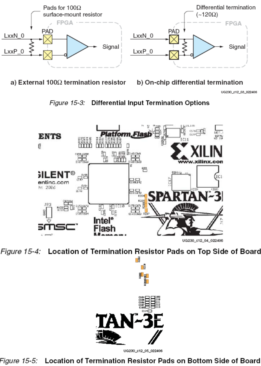 其二见图15.3b所示,利用Spartan-3E的特点——片上差分终端,它是使用差分I/O信号的