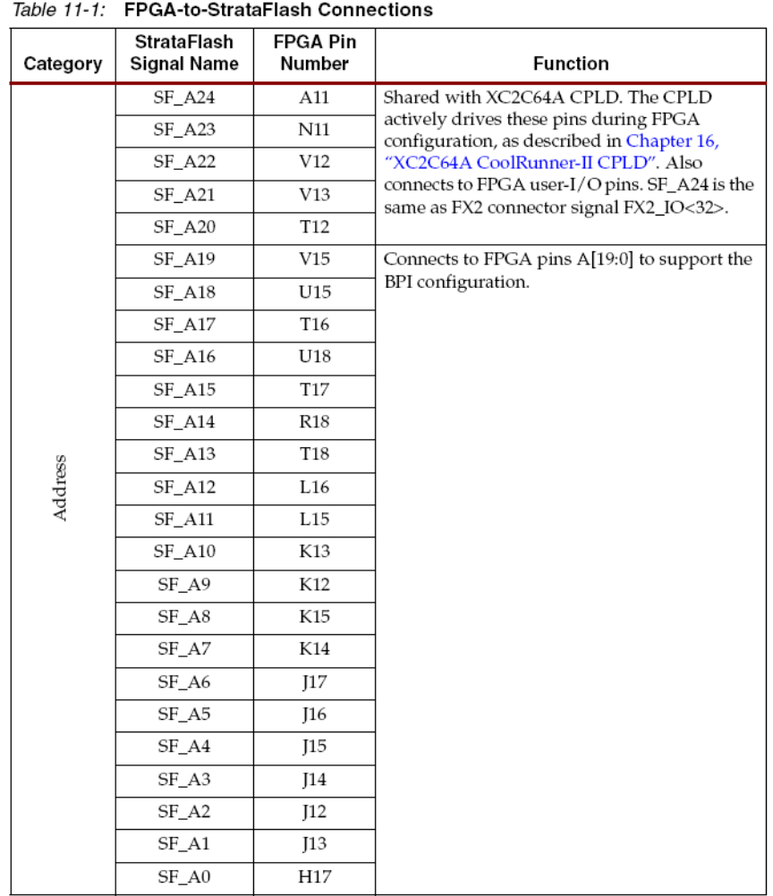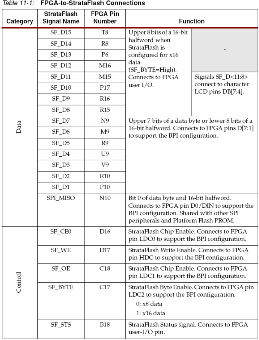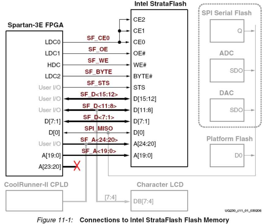 的StrataFlash PROM只用到低24位,SF_A<23:0>,SF_A<24>用来提供给更大容量的StrataFlash