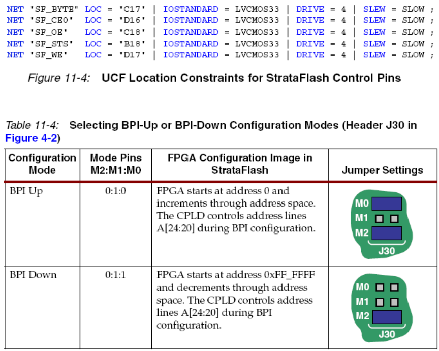 2)在BPI-UP配置模式(FPGA_M<2:0>=010)FPGA有效时,置StrataFlash PROM 地址线的5