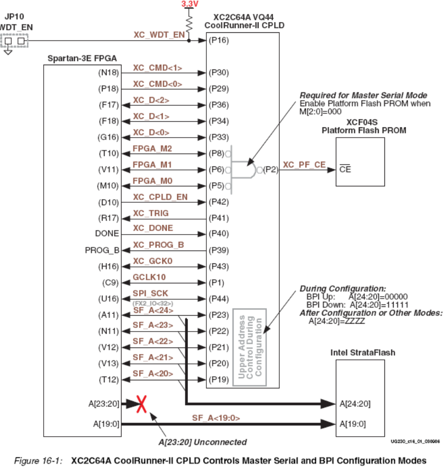 供一个低电平有效的使能信号。Platform Flash PROM在其它任何模式都失能。CPLD减少了跳线