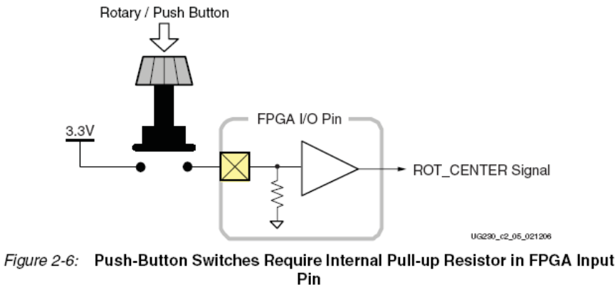 当开关关上或上拉时, FPGA的管脚连接3.3V电源,即逻辑高电平。断开或下拉时,FPGA