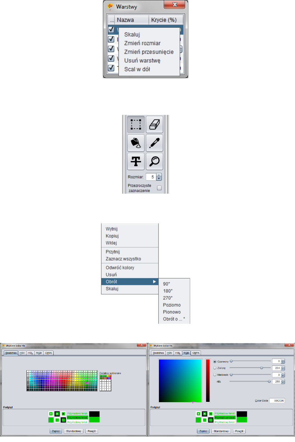 narzędzi oraz warstw pozostają te same, natomiast tworzone jest dodatkowe okno związane z