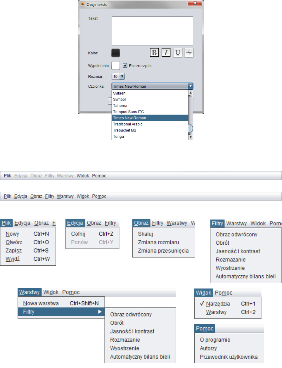 zapisywanie stanu aplikacji, a także podstawowe filtry obrazów i warstw (patrz pkt 1.2). Zaletą