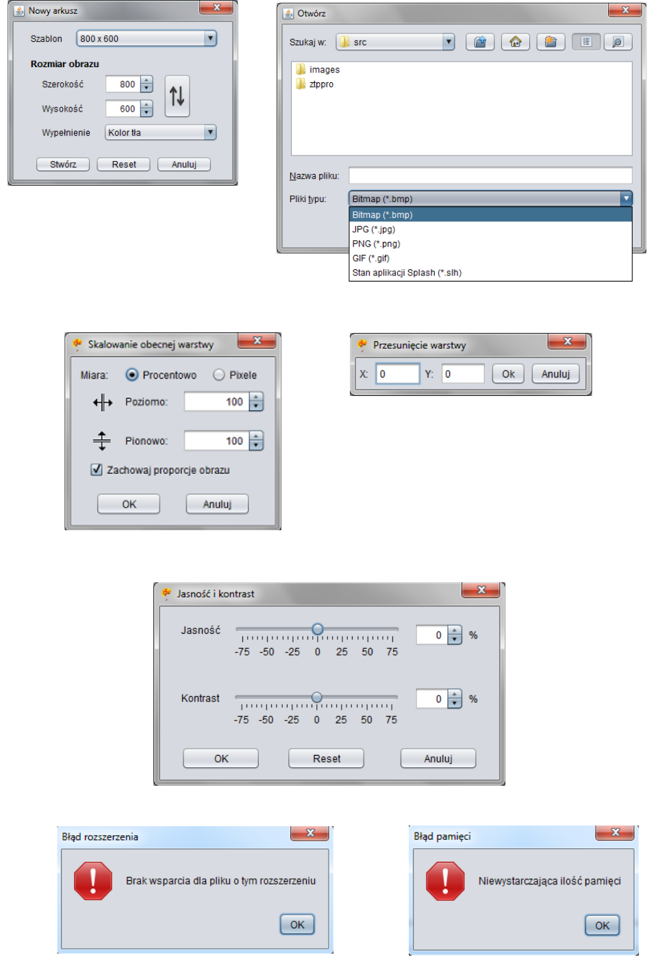 • otwieranie oraz zapisywanie obrazów do plików o rozszerzeniach: