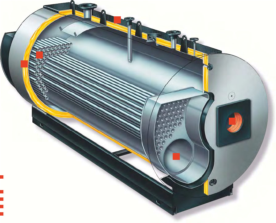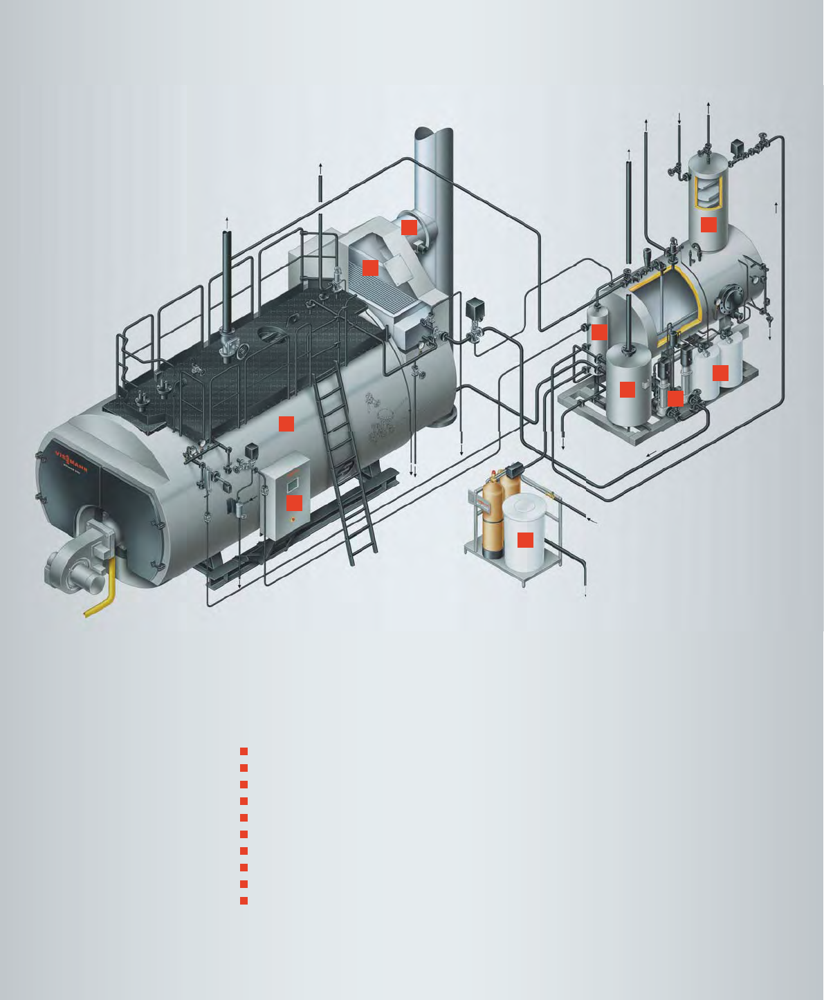 pressure steam boilers up to 26 t/h as well as waste heat boilers. The flame tube/smoke