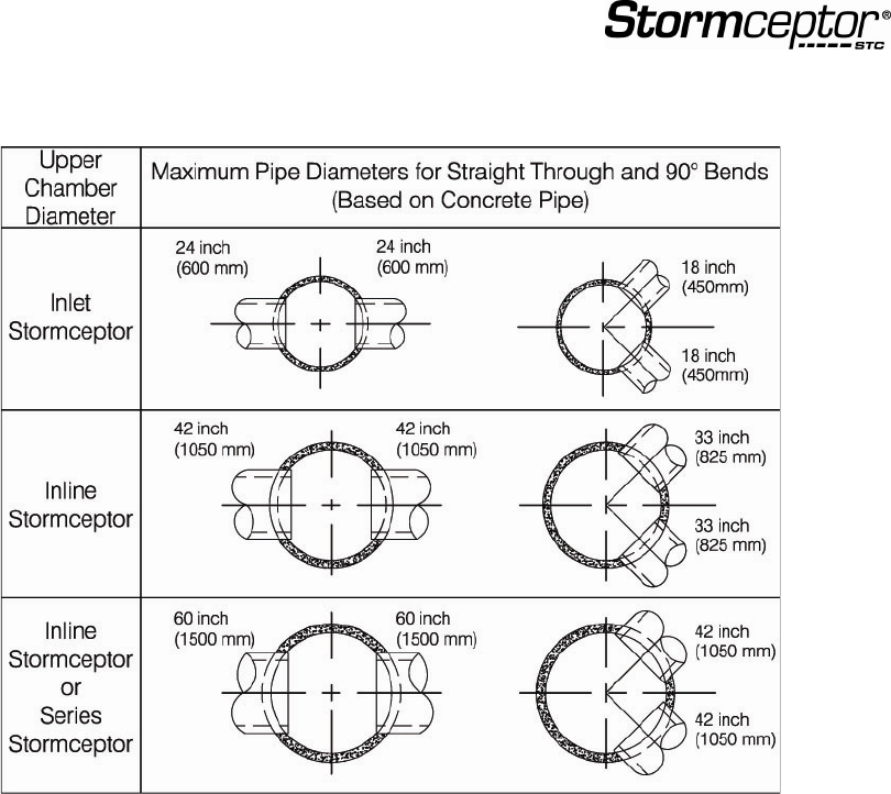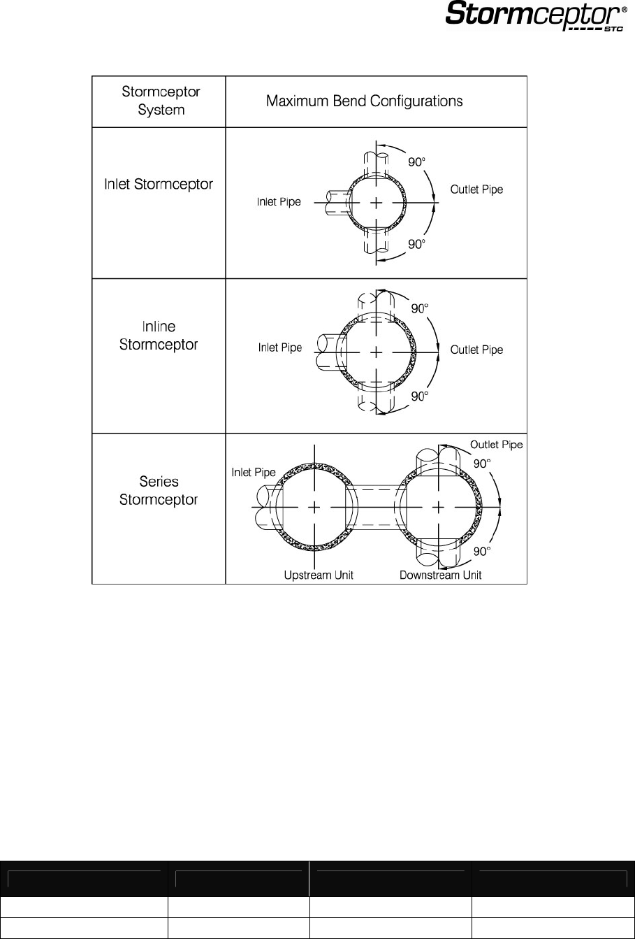 • The inlet an din-line Stormceptor units can accommodate turns to a maximum of 90 degrees.