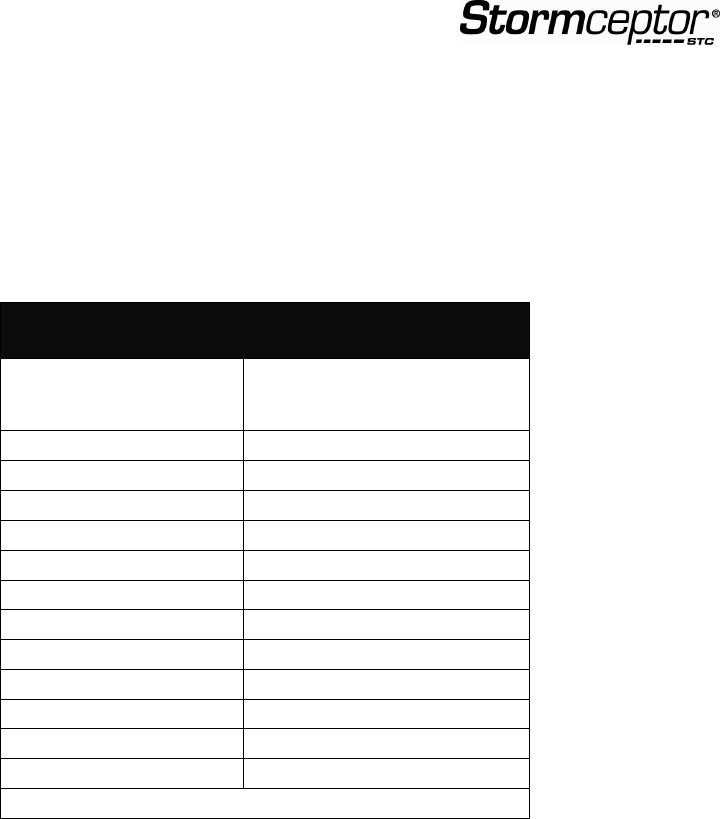 * based on 15% of the Stormceptor unit’s total storage