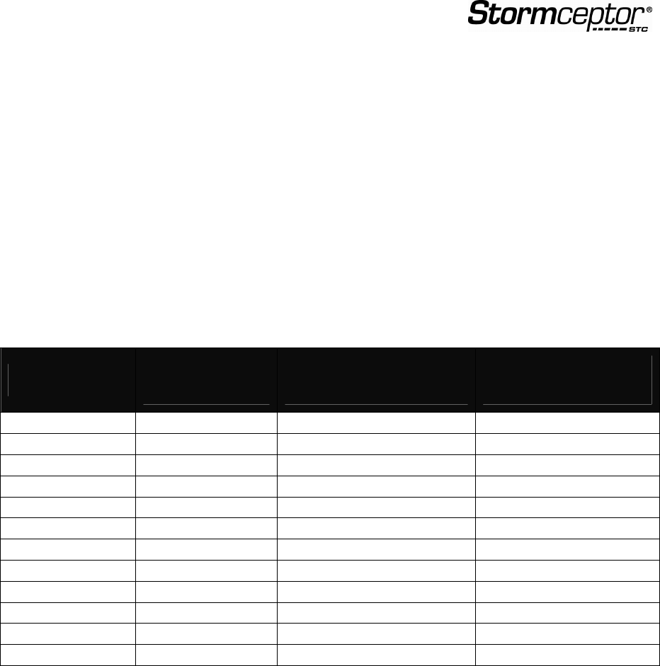 SUMMARY OF STORMCEPTOR REQUIREMENTS FOR TSS