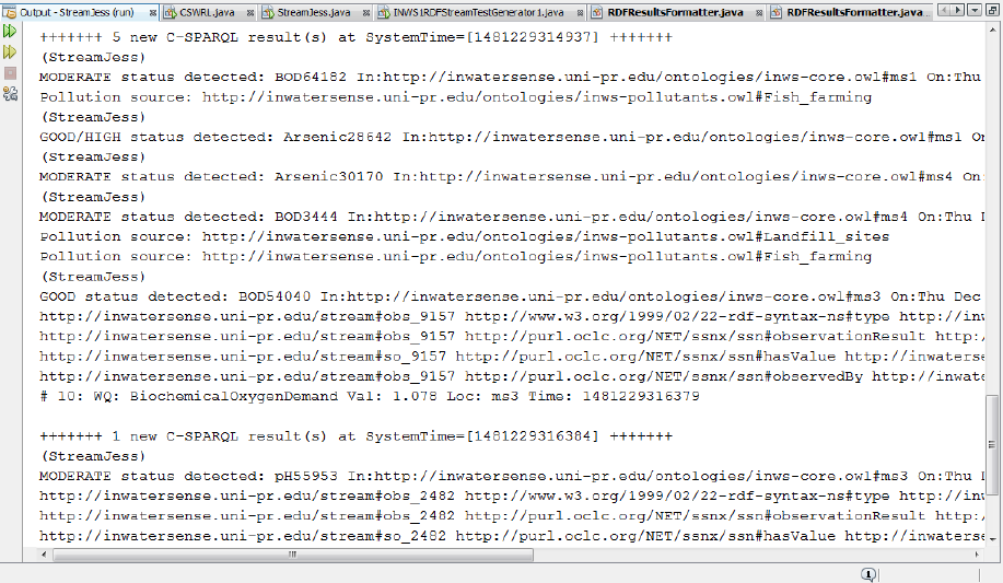 registered rules. Namely, based on C-SPARQL design principle each query attaches new result formatter.