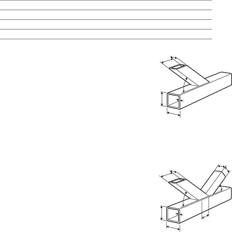 32 Table 2B - Length of intersection of RHS bracing on a