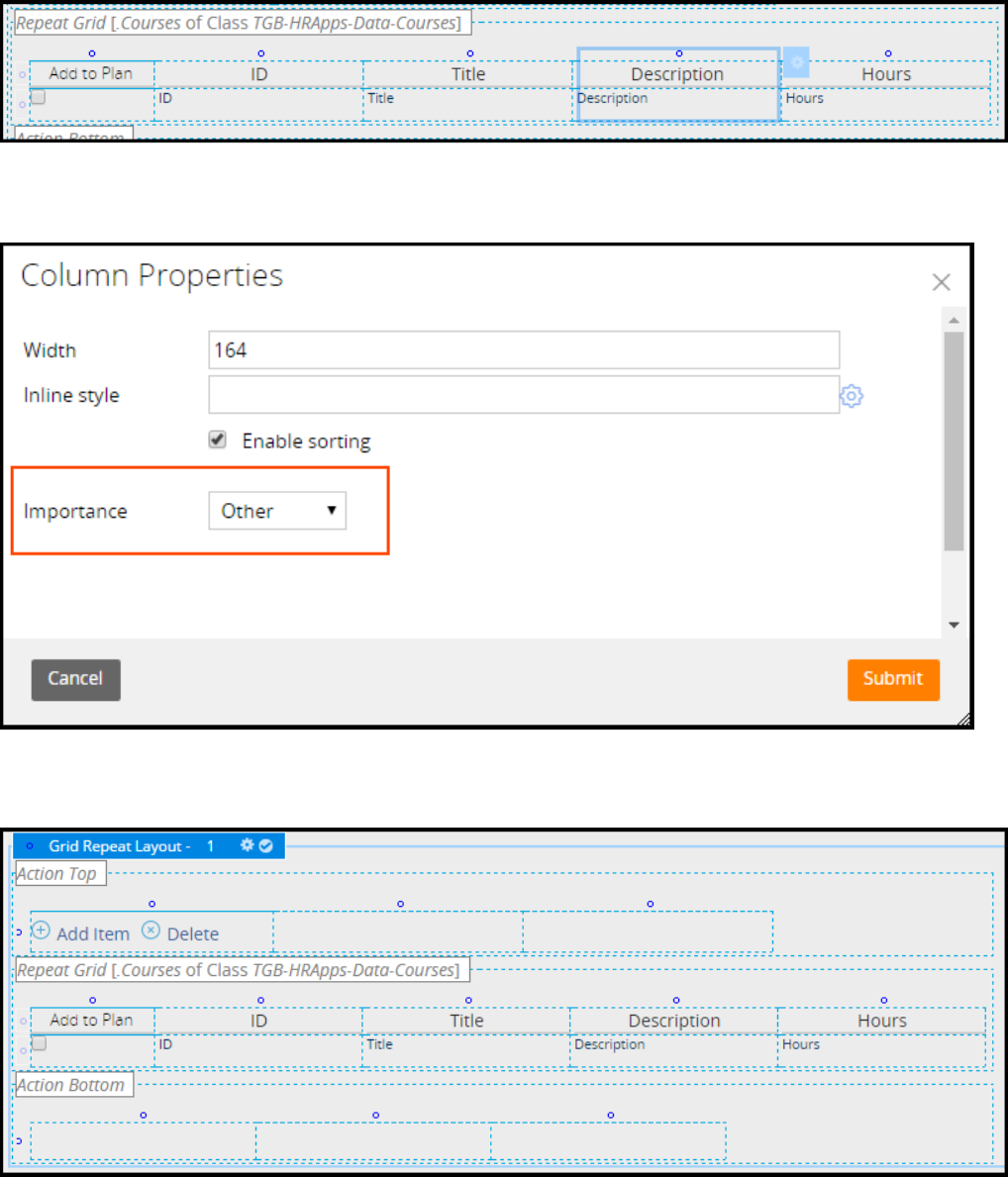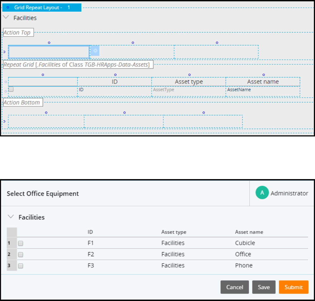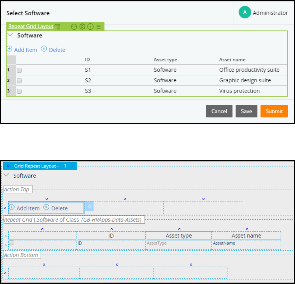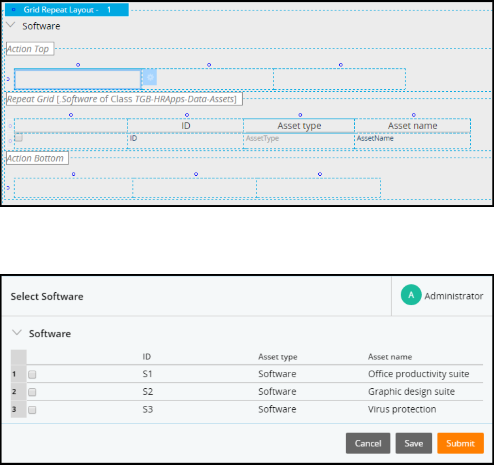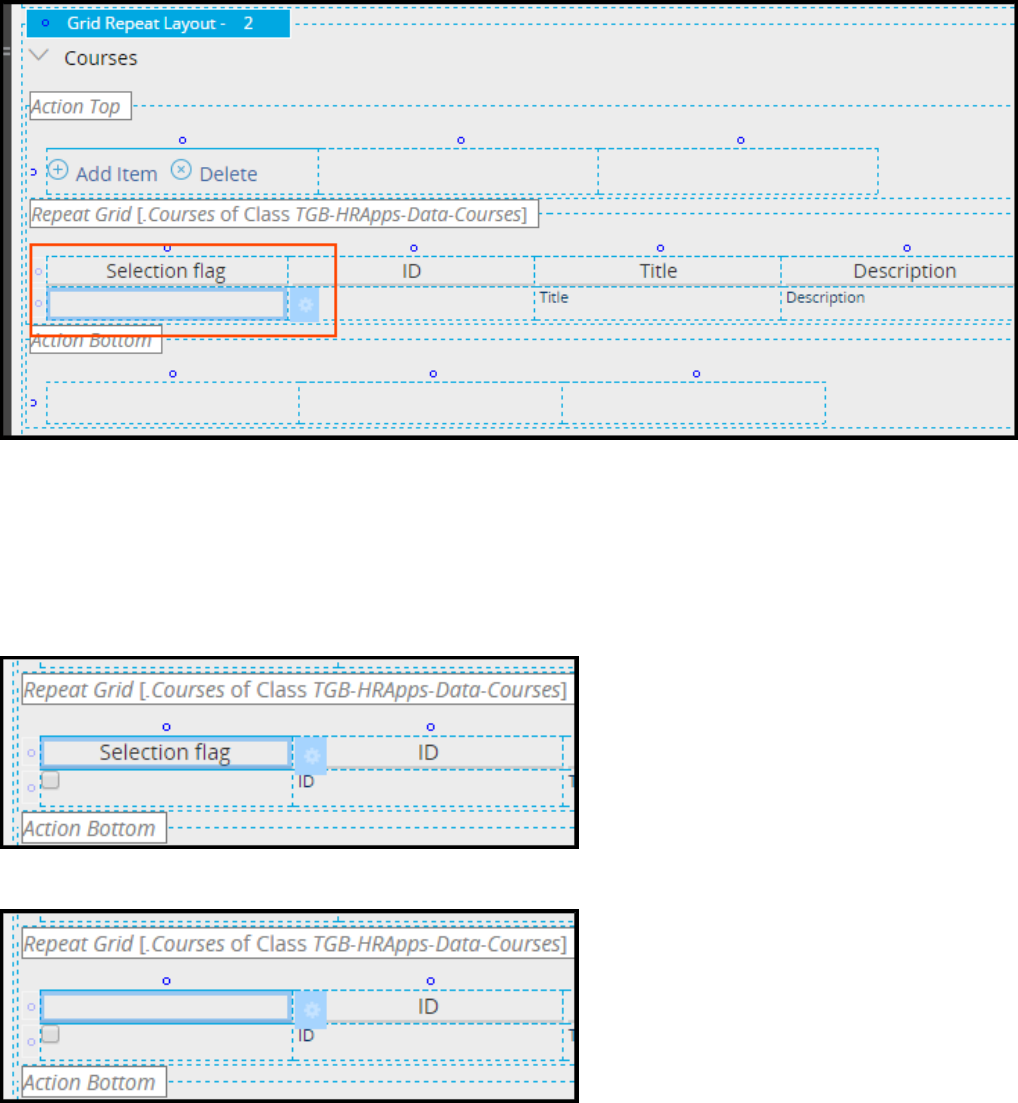 66. On the section, in the Repeat Grid, select the left cell in the Action Top section.