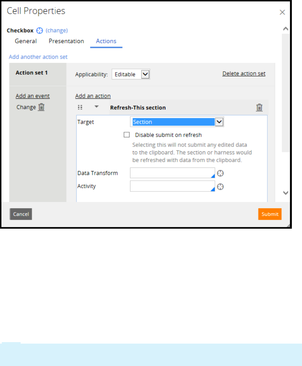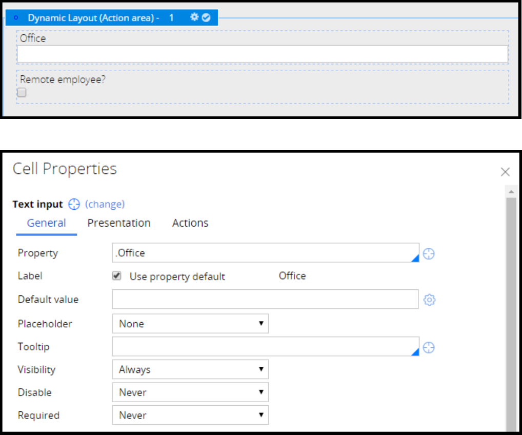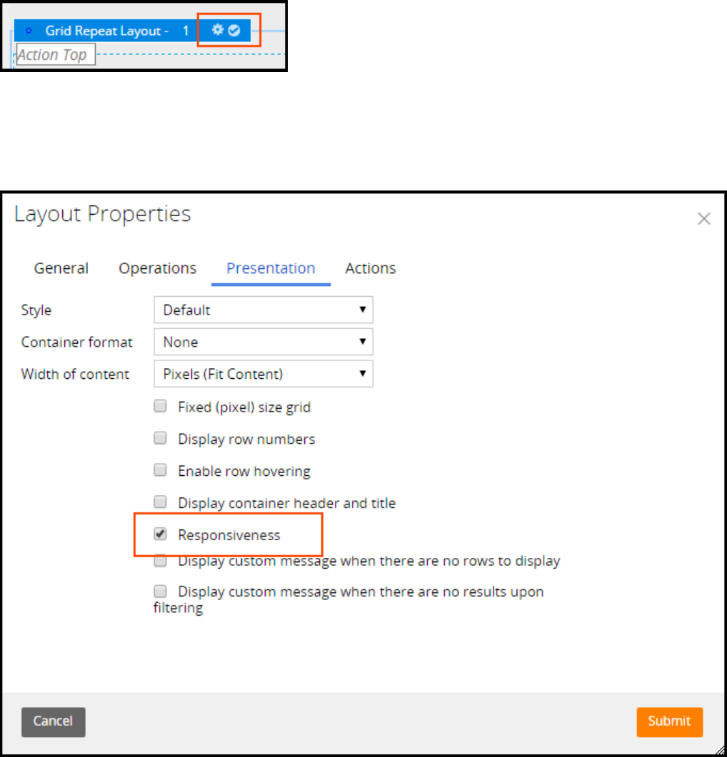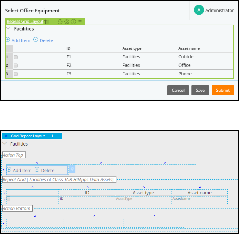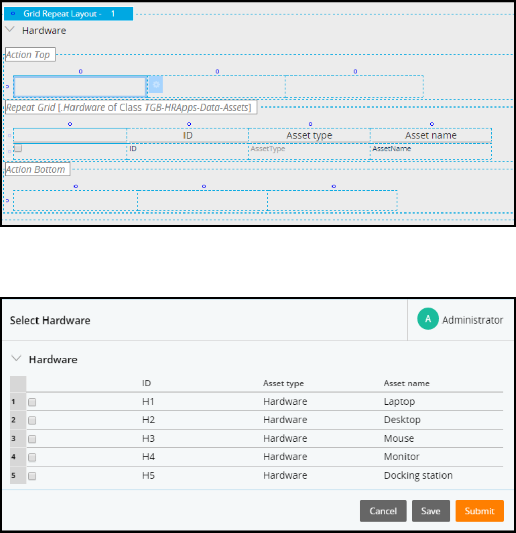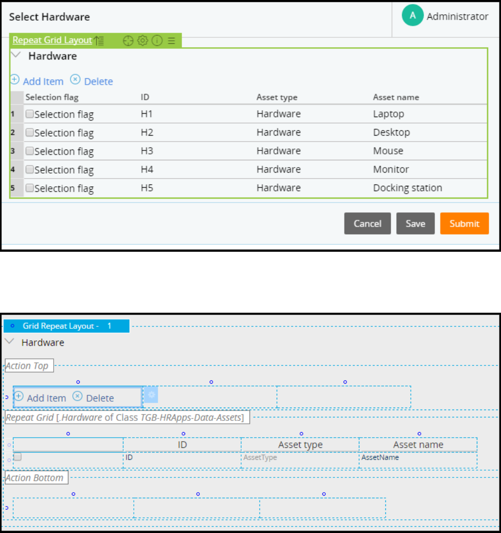 66. On the section, in the Repeat Grid, select the left cell in the Action Top section.