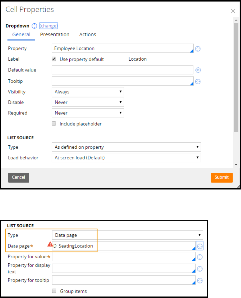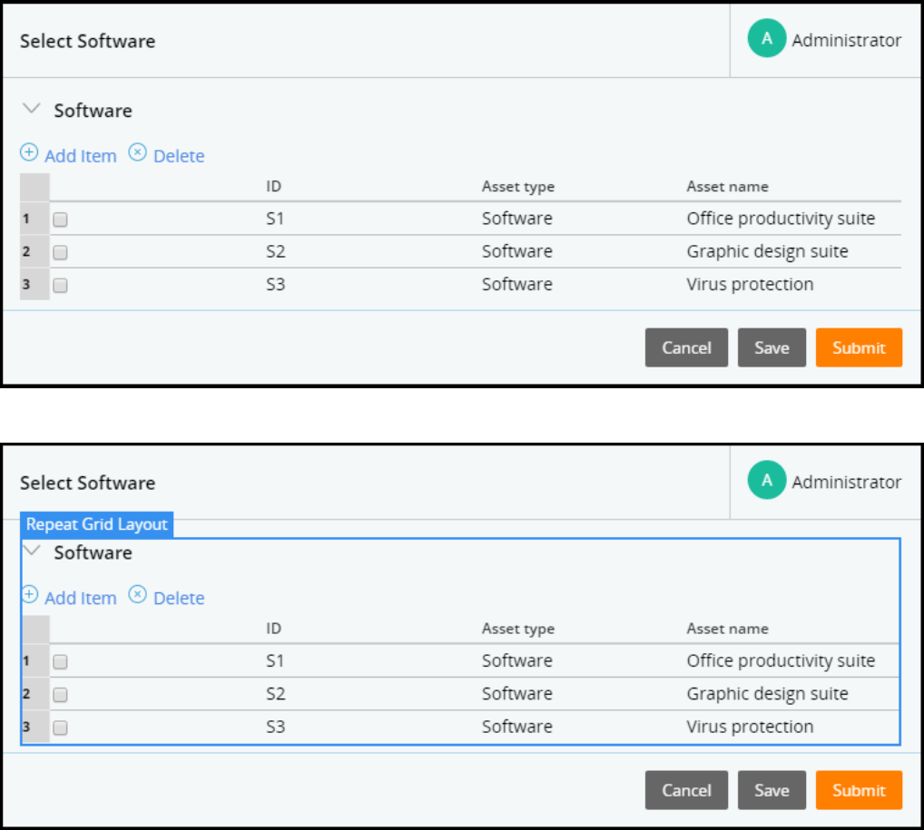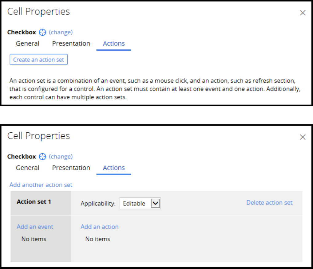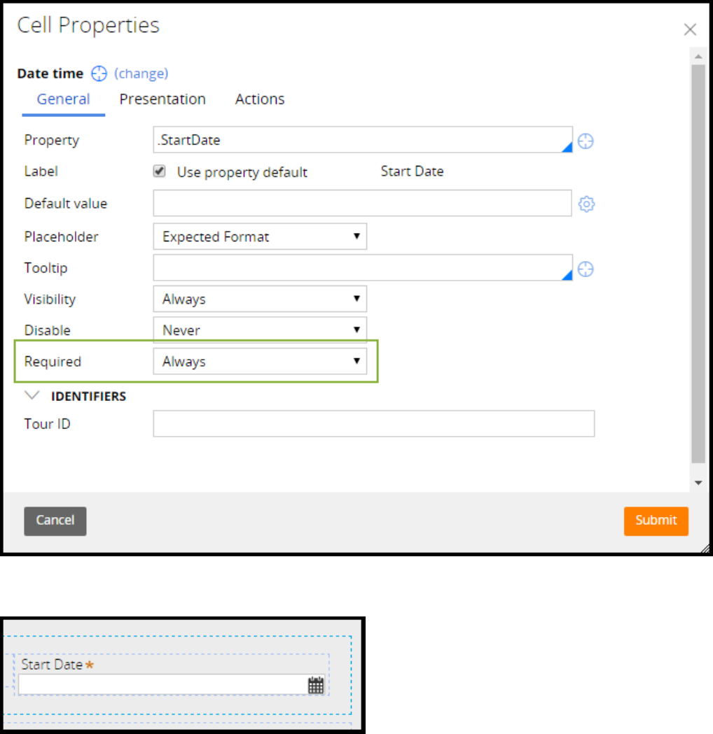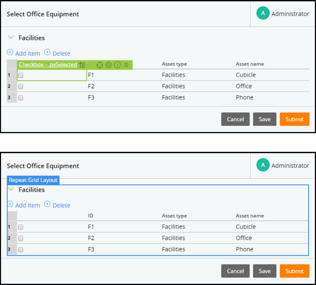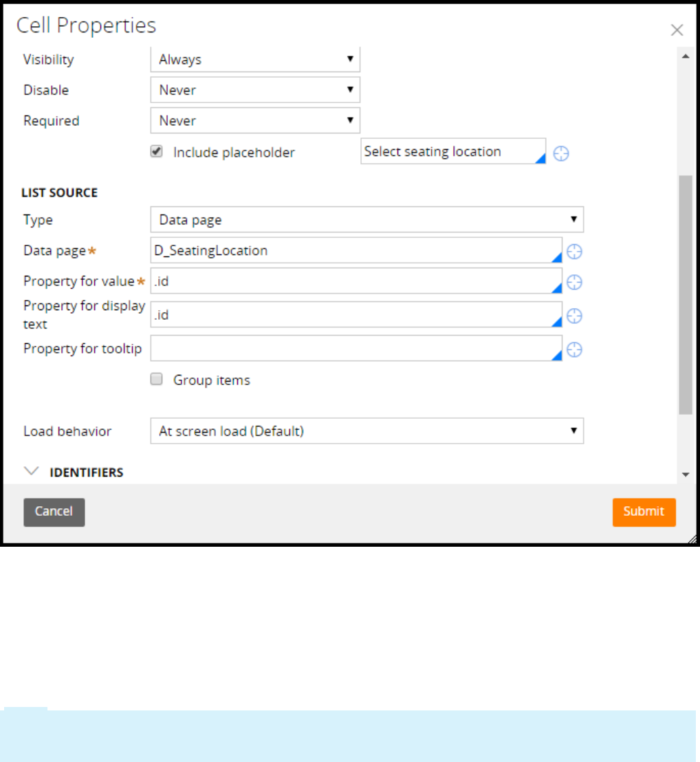 66. On the section, in the Repeat Grid, select the left cell in the Action Top section.