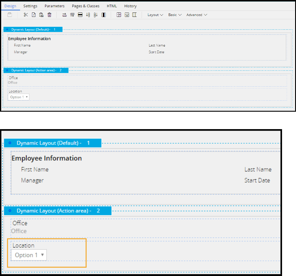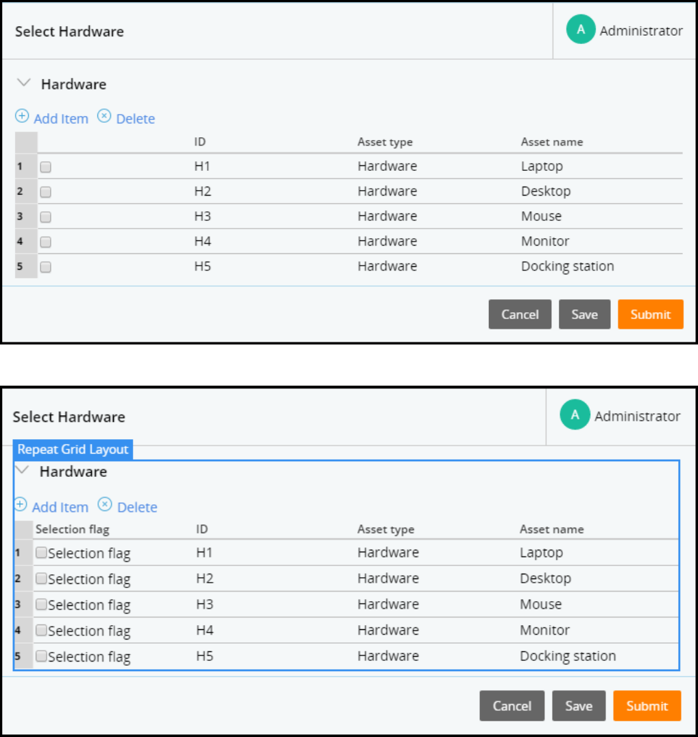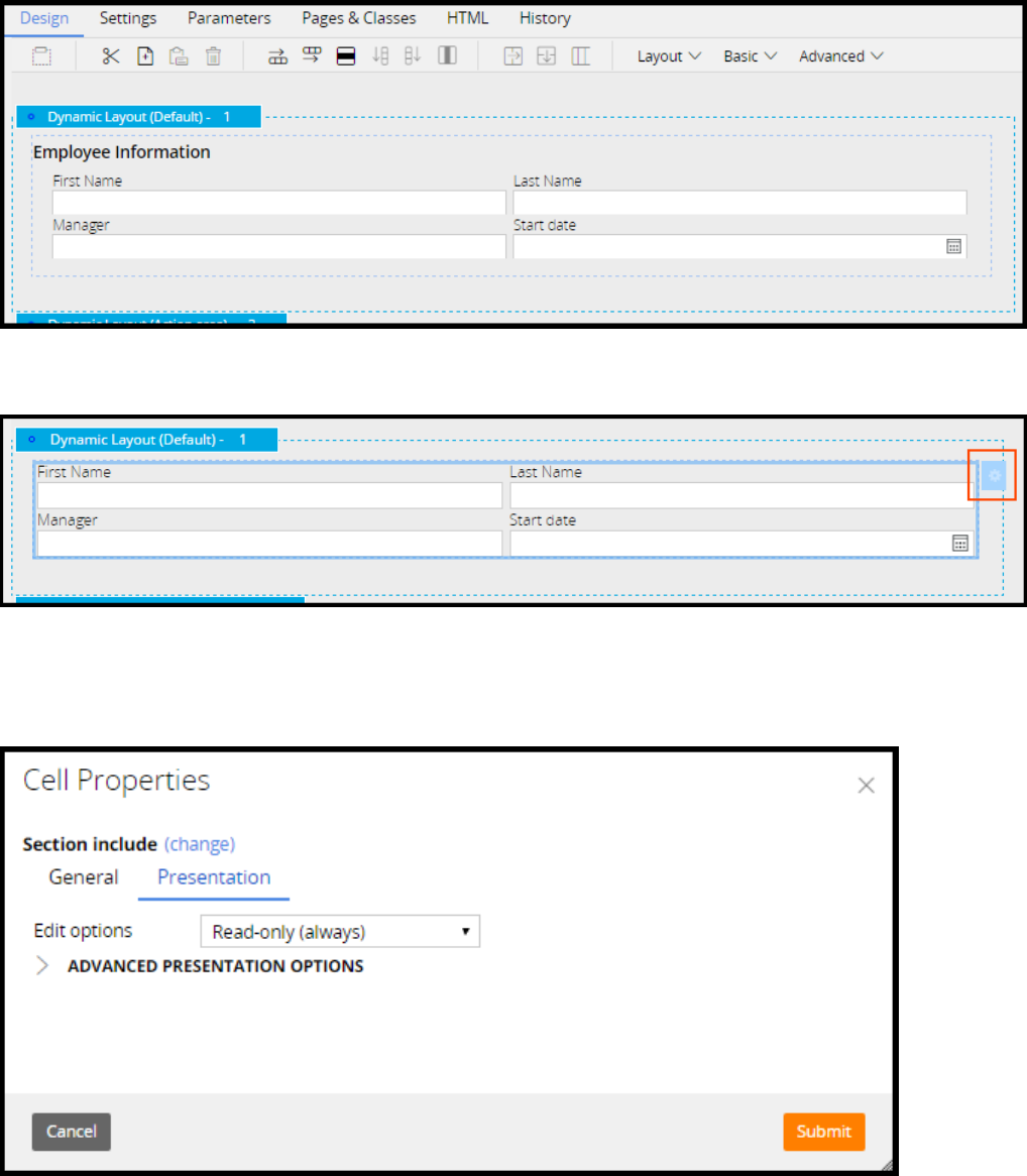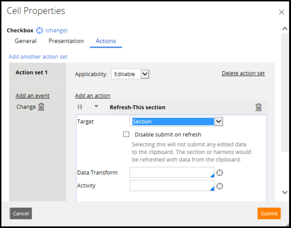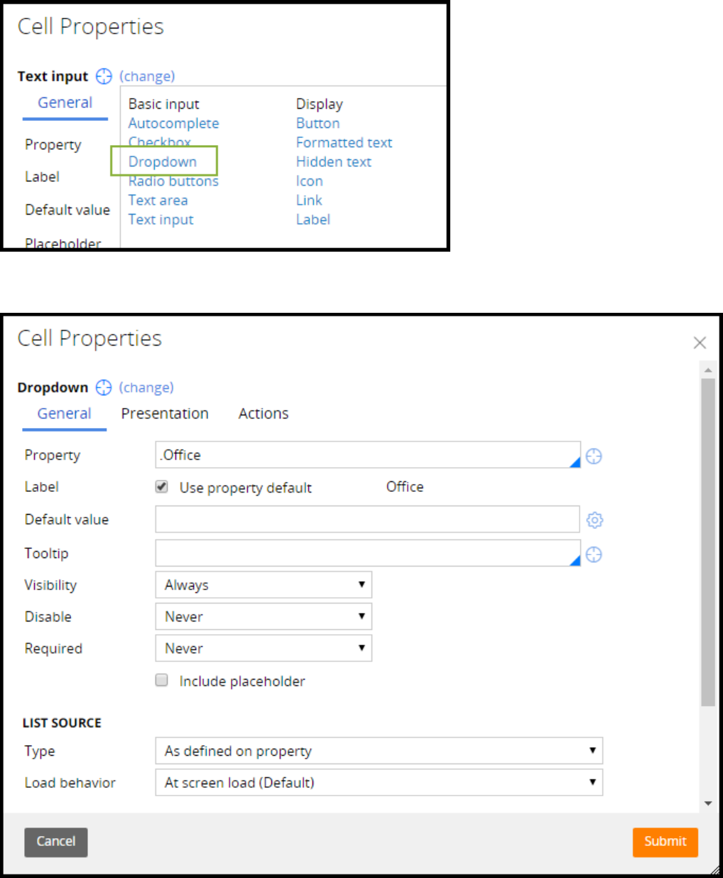 66. On the section, in the Repeat Grid, select the left cell in the Action Top section.