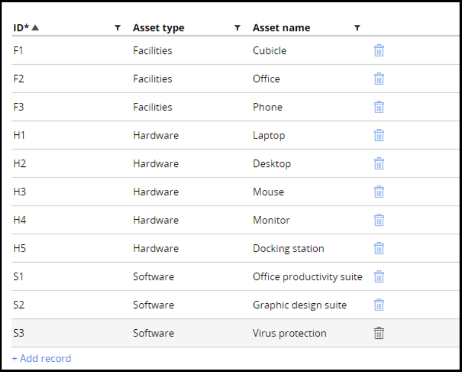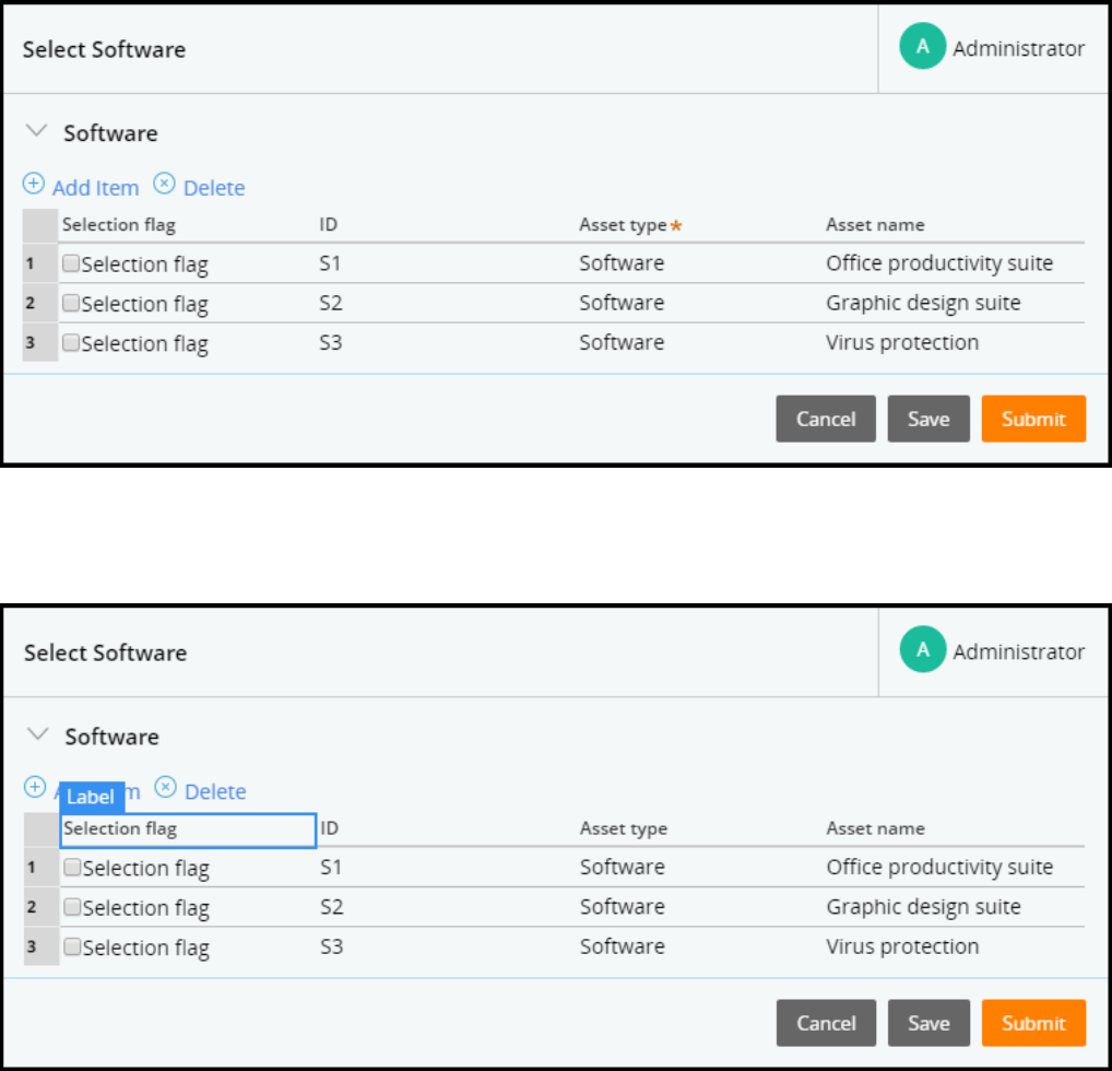 51. On the Select Software form, confirm that only assets of type Facilities are displayed in the list of