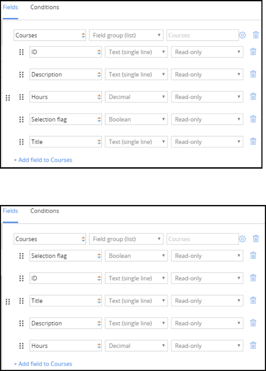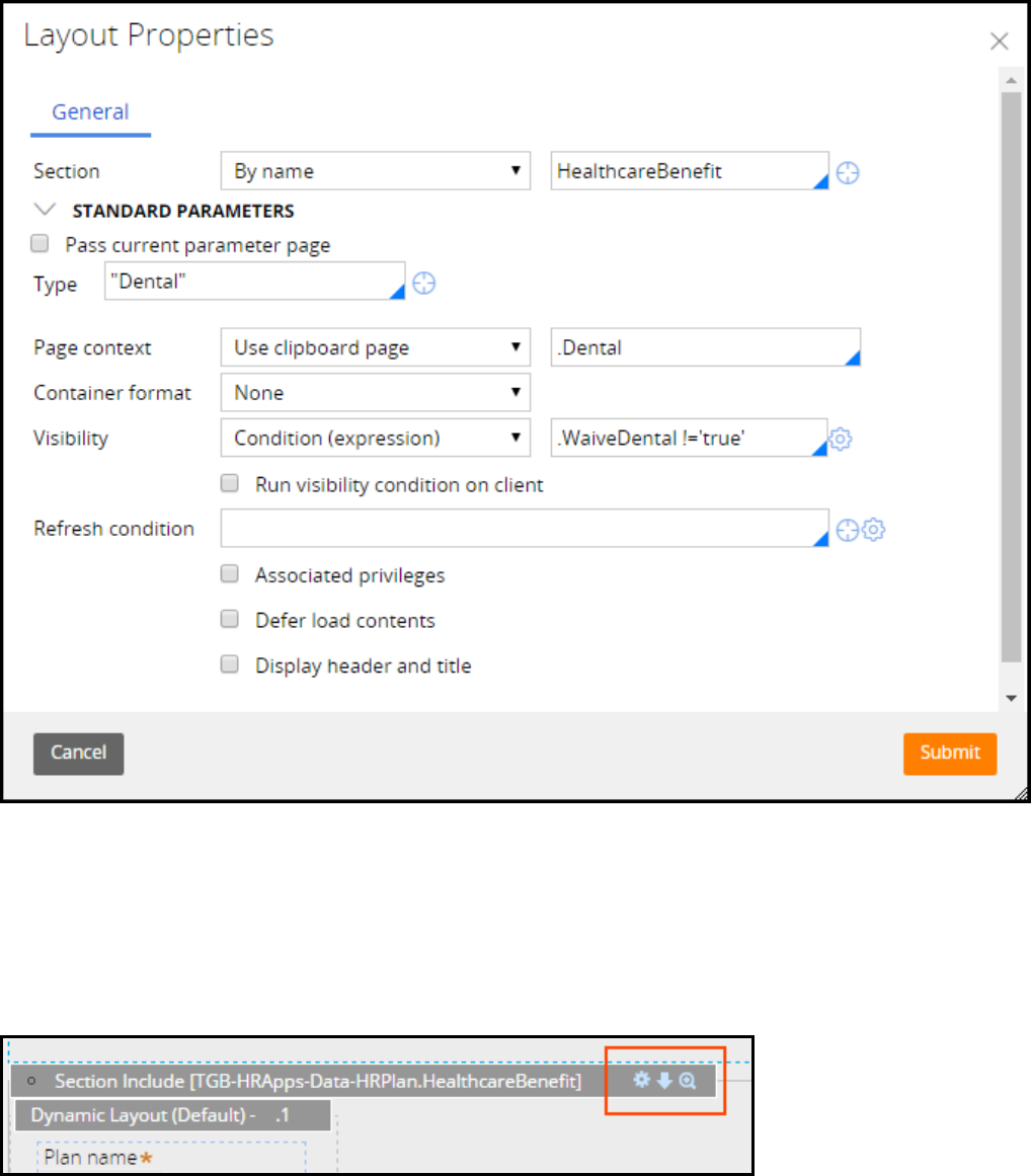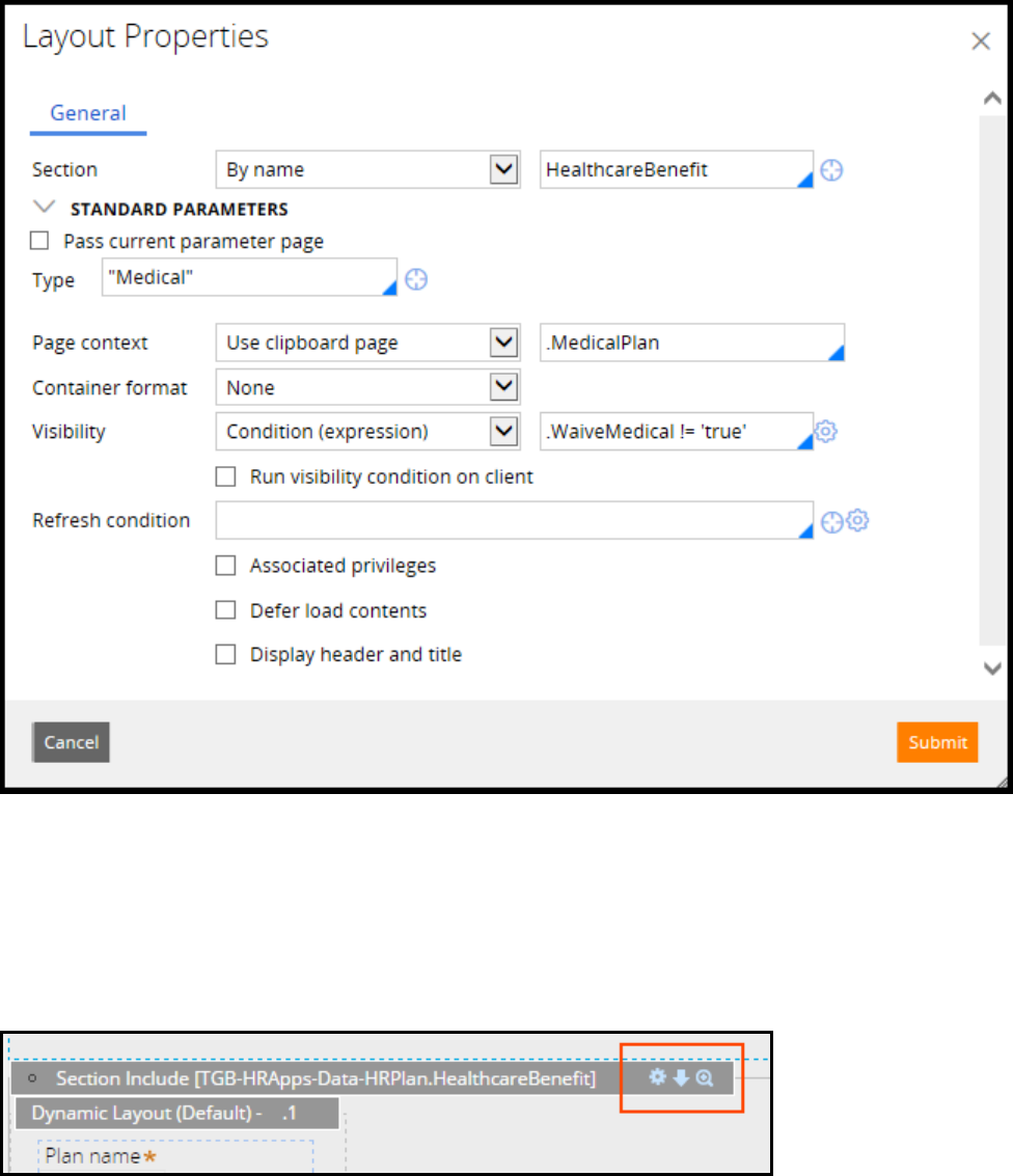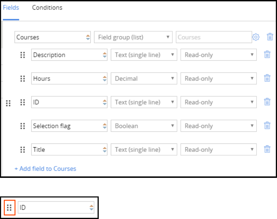 65. In the selection identifier, click the crosshair icon to open the section that contains the repeating