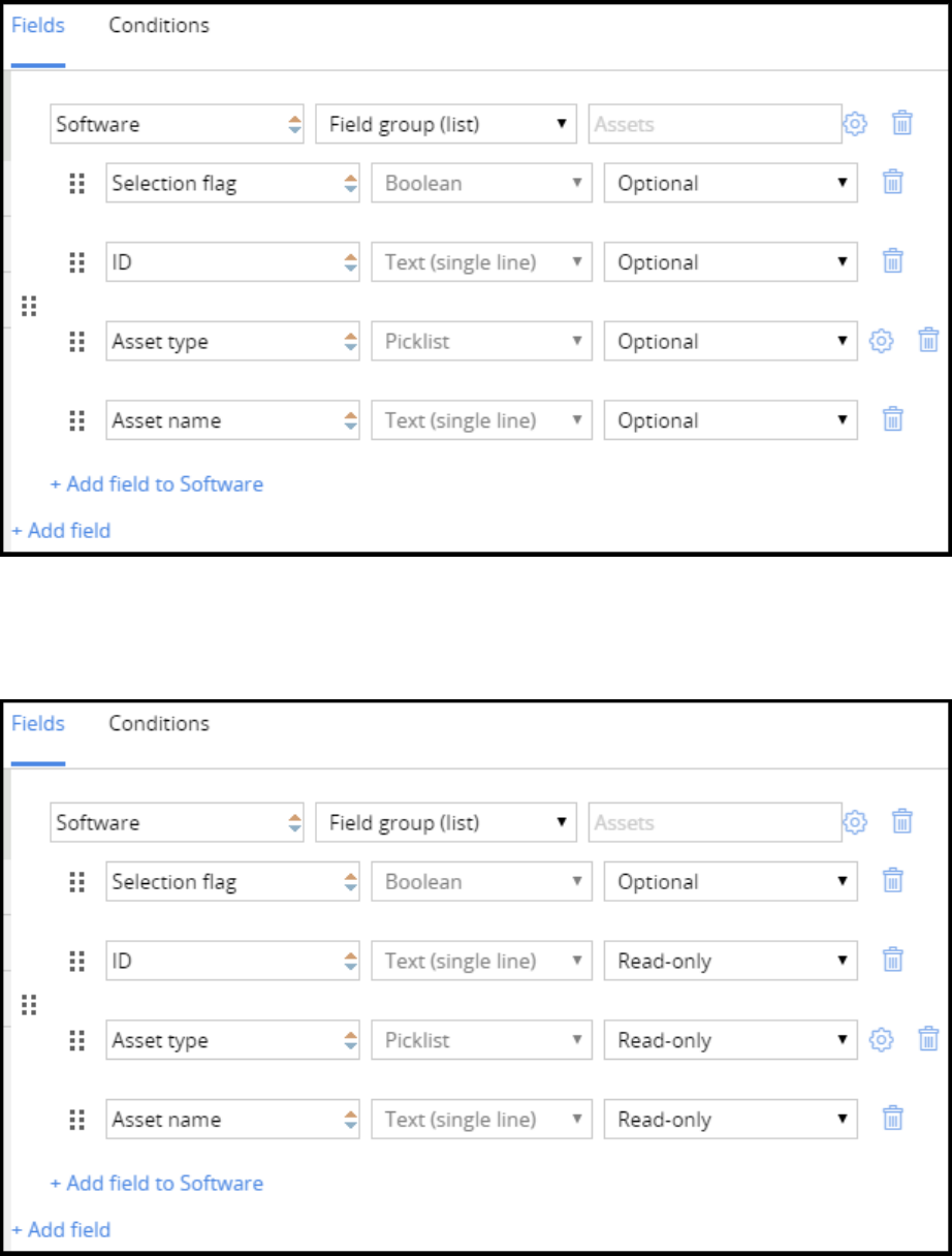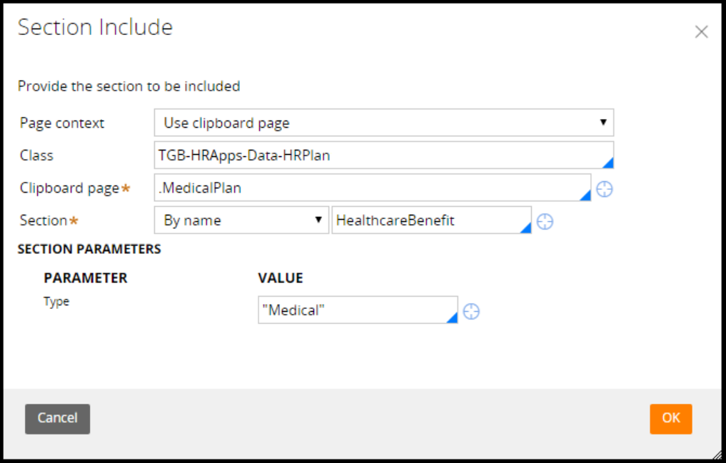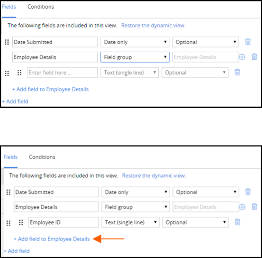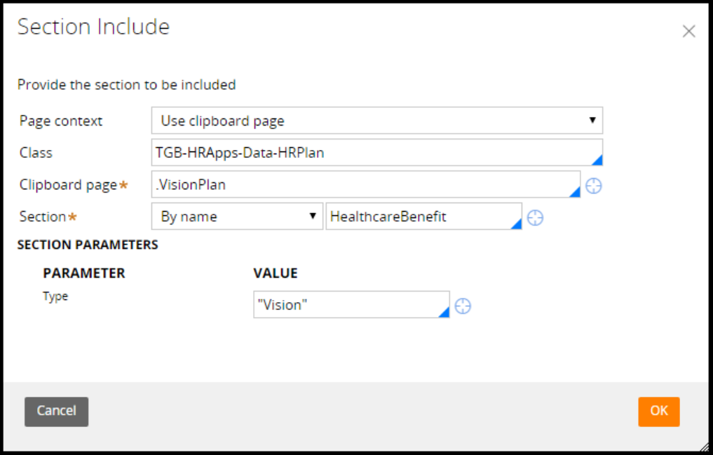 65. In the selection identifier, click the crosshair icon to open the section that contains the repeating