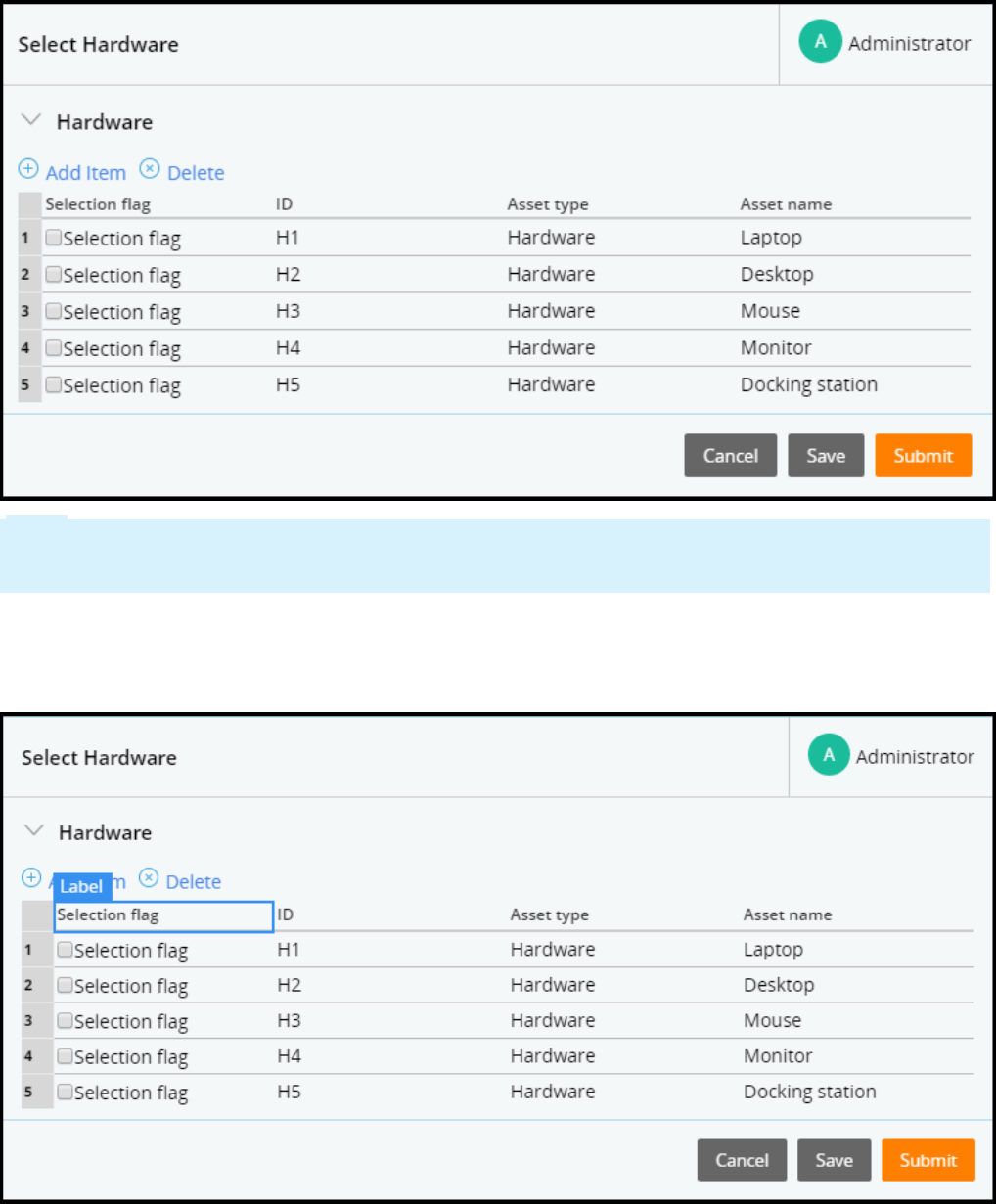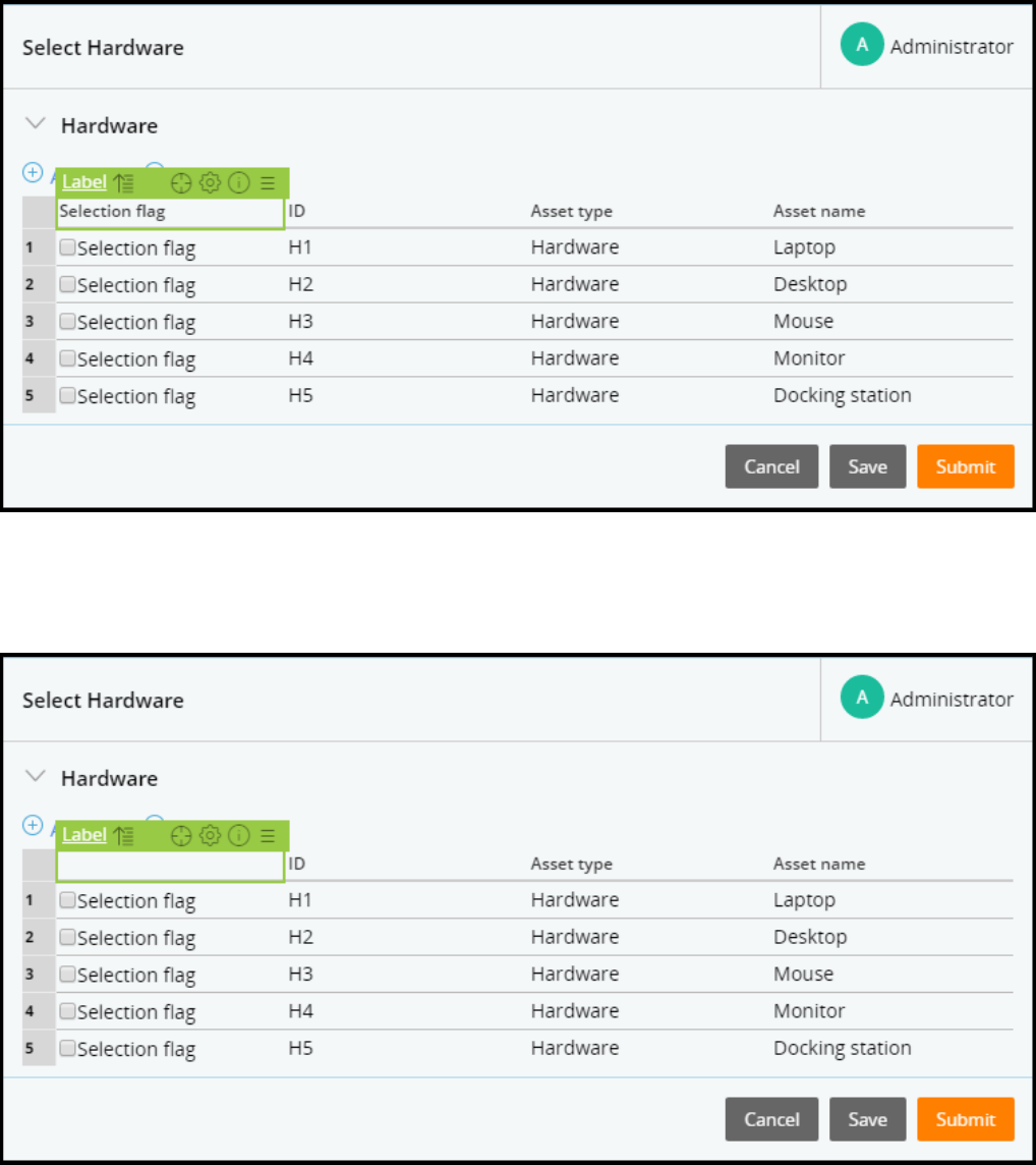 53. Position the Live UI selection rectangle over the Selection flag column label.
