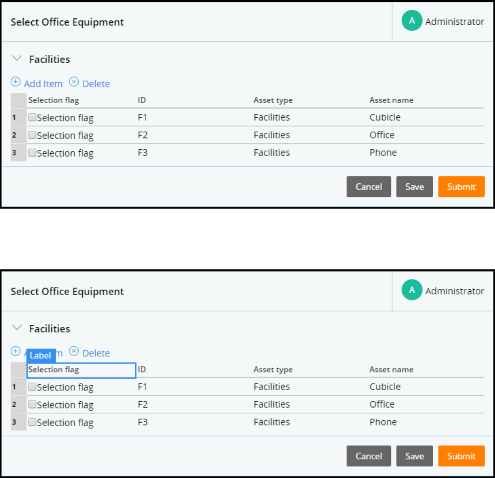 8. On the Select Office Equipment form, click Submit to advance to the Facilities Review form.
