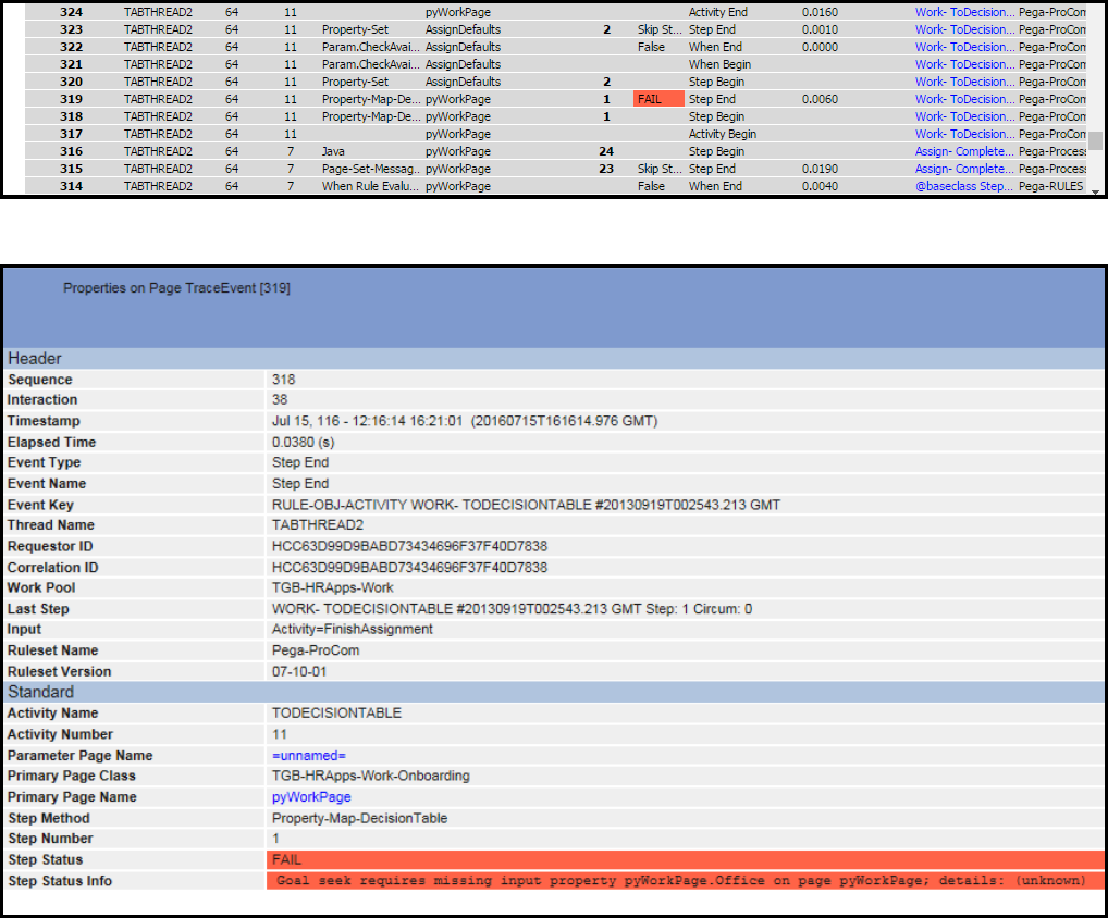 12. In the Tracer window, click the word Fail to open the event properties in a new window.