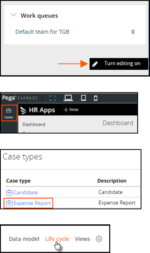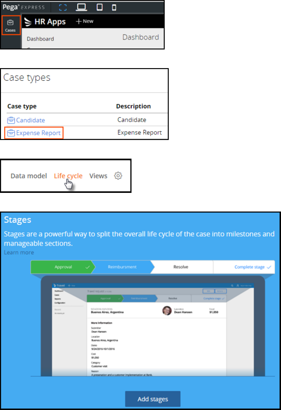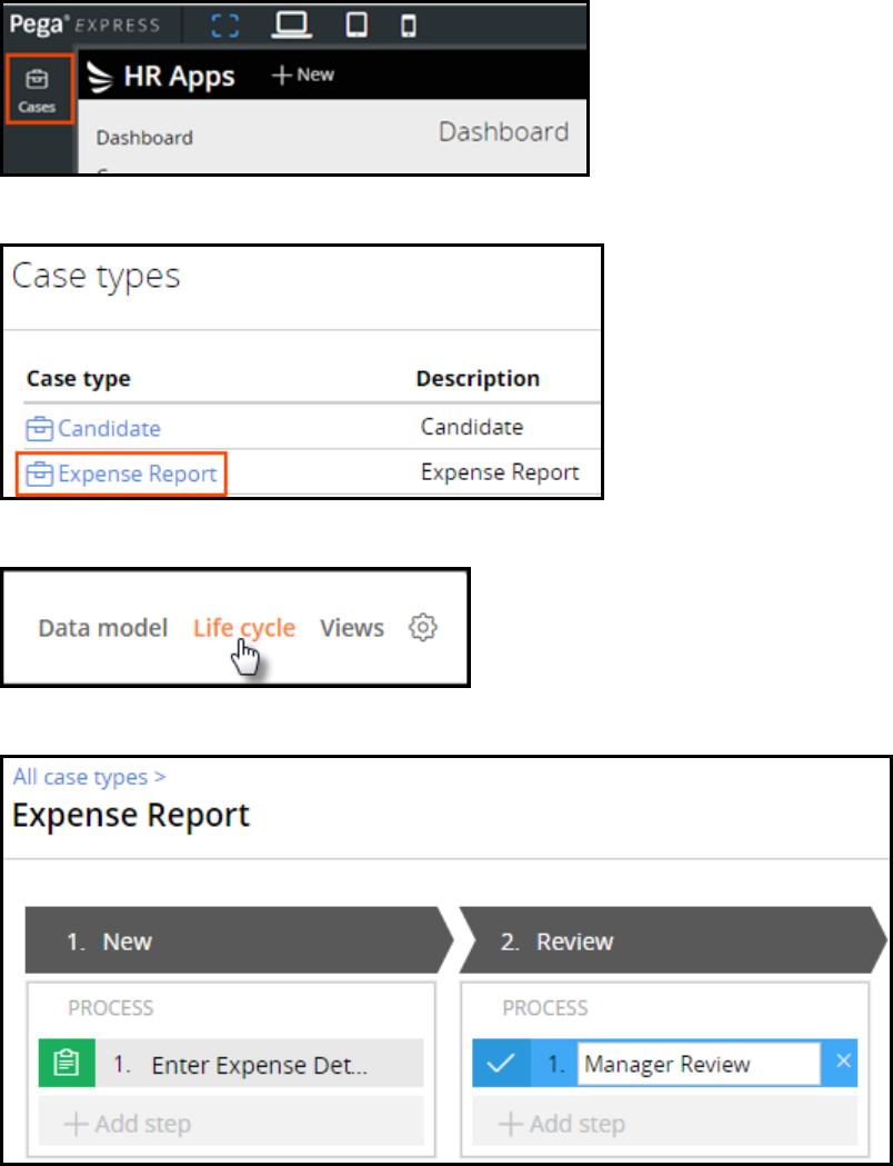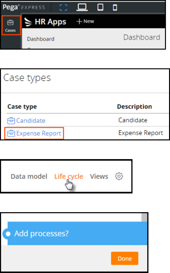 lUse Pega Express to model the life cycle of a case that mirrors the way business people think about