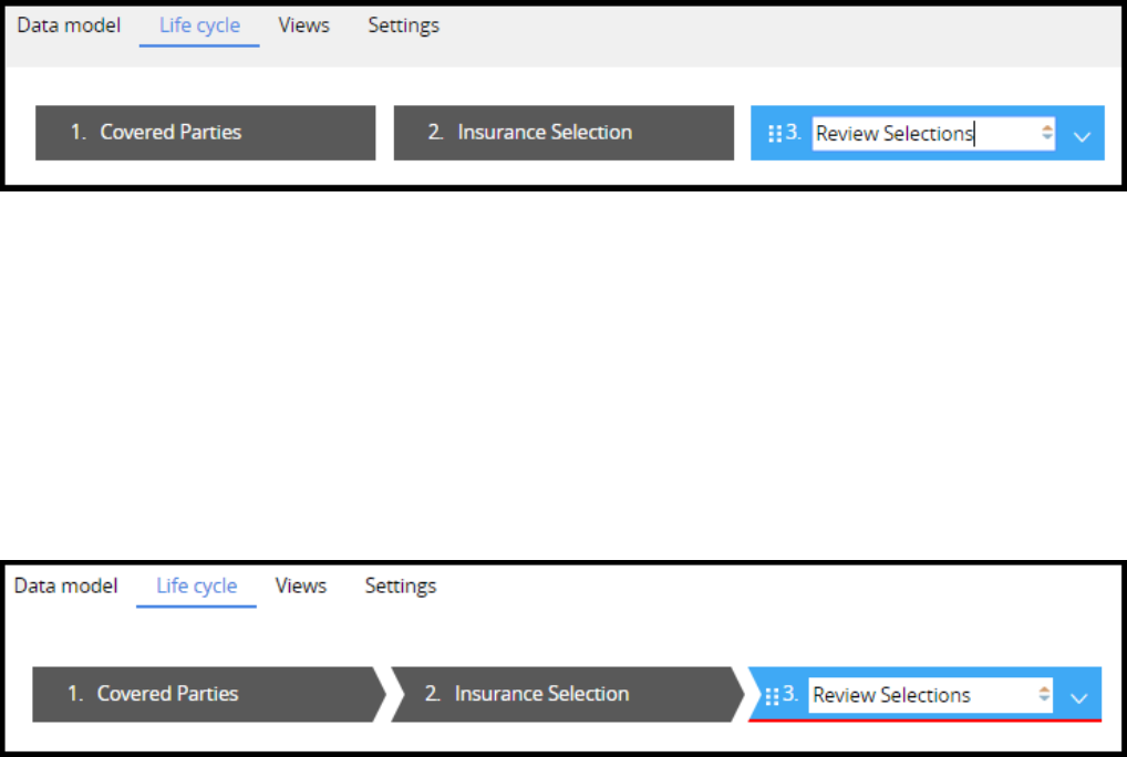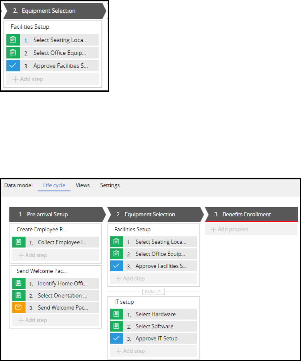2. On the Life cycle tab on the Onboarding case type, select the Facilities Setup process.The Process