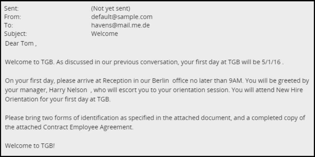 assignment, during the Send Welcome Packet process. This list is marked required, so users cannot