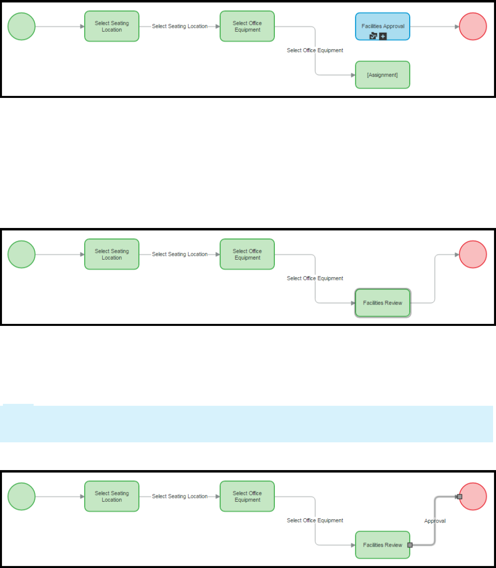 reaches the Facilities Review assignment. Although a router is configured for the Facilities Review