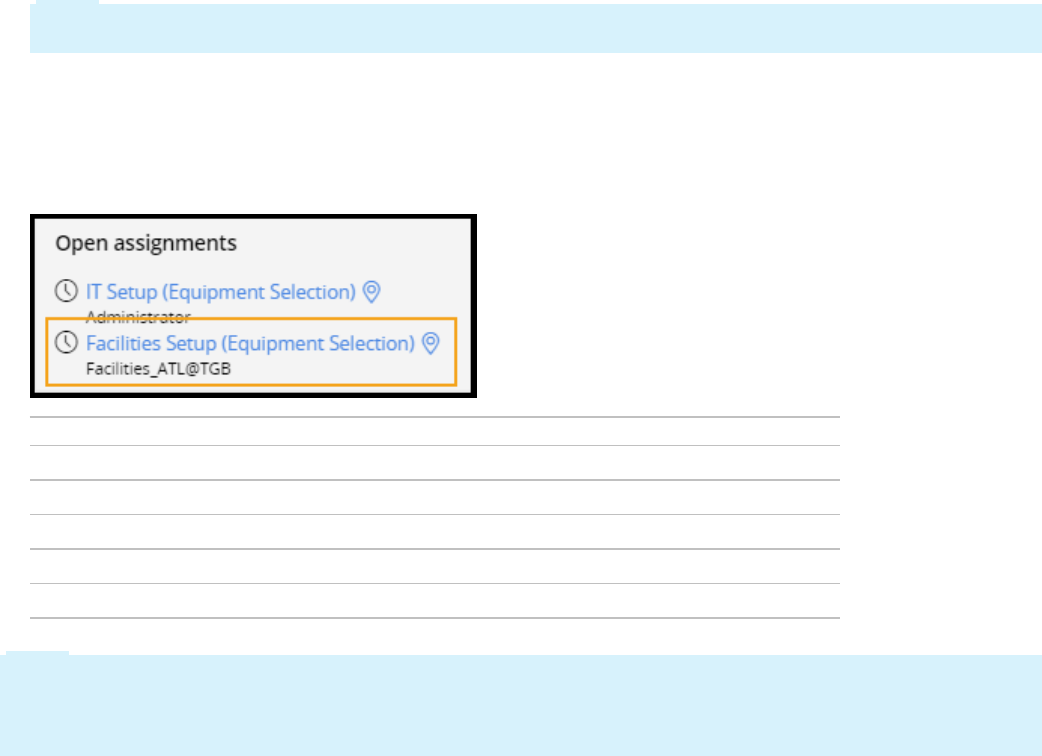 49. In the Open Assignments section, click Facilities Setup (Equipment Selection) to advance to the