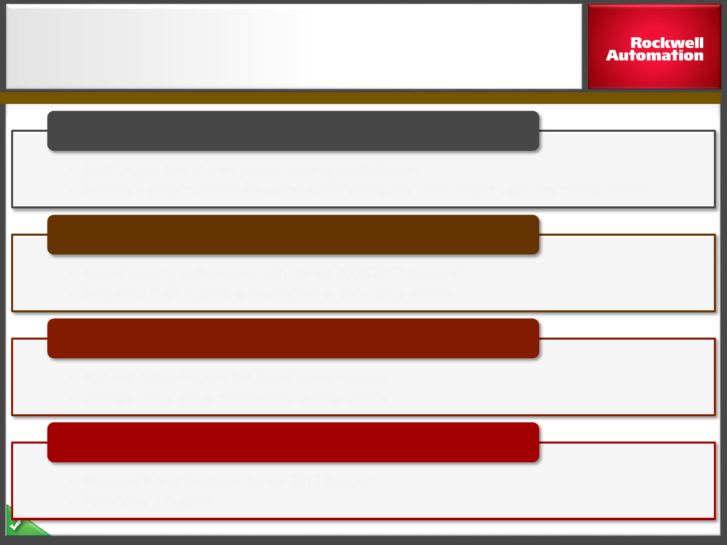 •Restore a project (MER/APA) without overwriting any other project’s security configuration