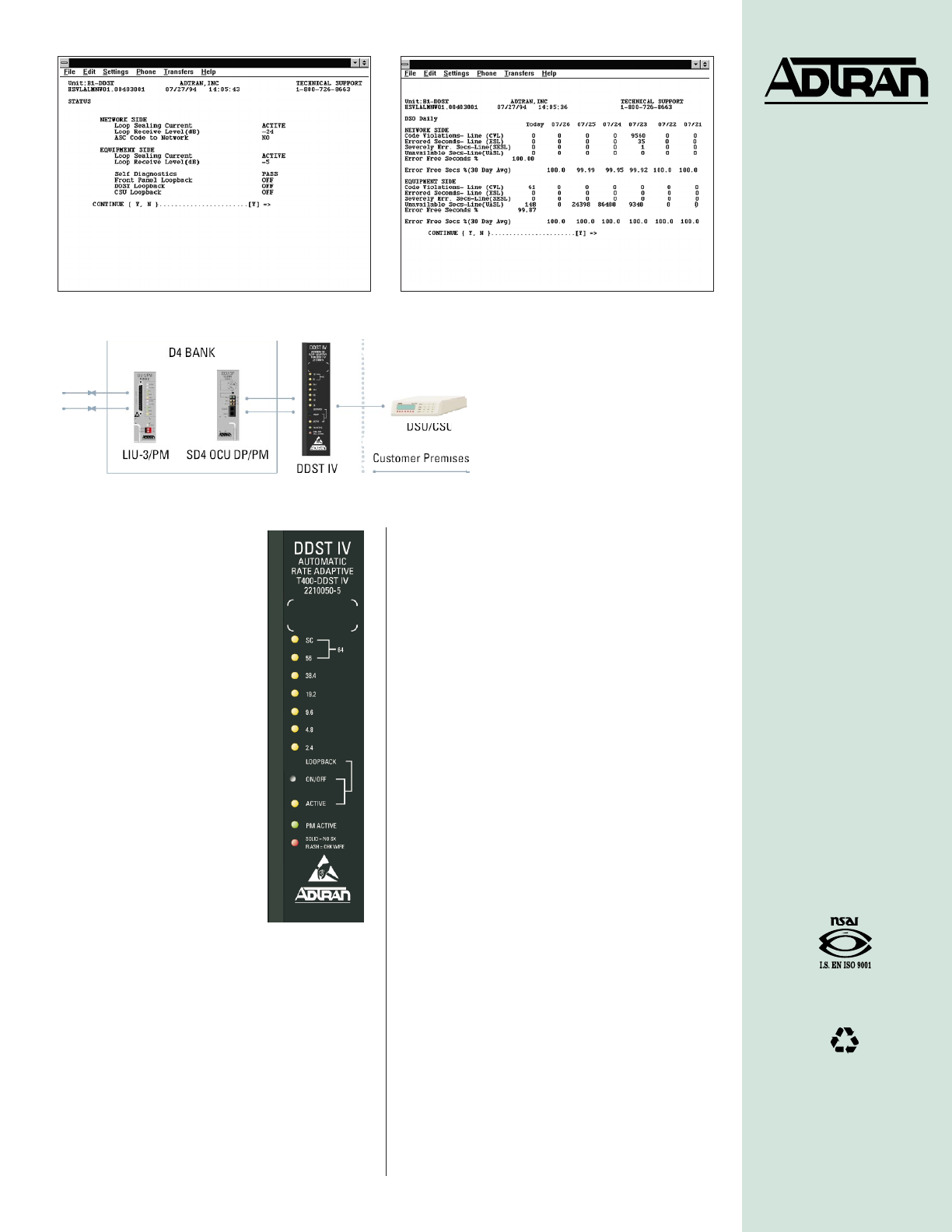ADTRAN SD4 OCU DP/PM, an intelligent OCU dataport, non-intrusively,