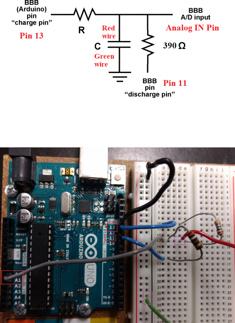 Figure B.2: Corresponding real setup of the Arduino unit. The red boxes label the pins while