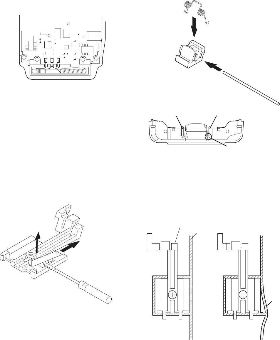 Place a coil spring(1) on the release latch(2) as shown in