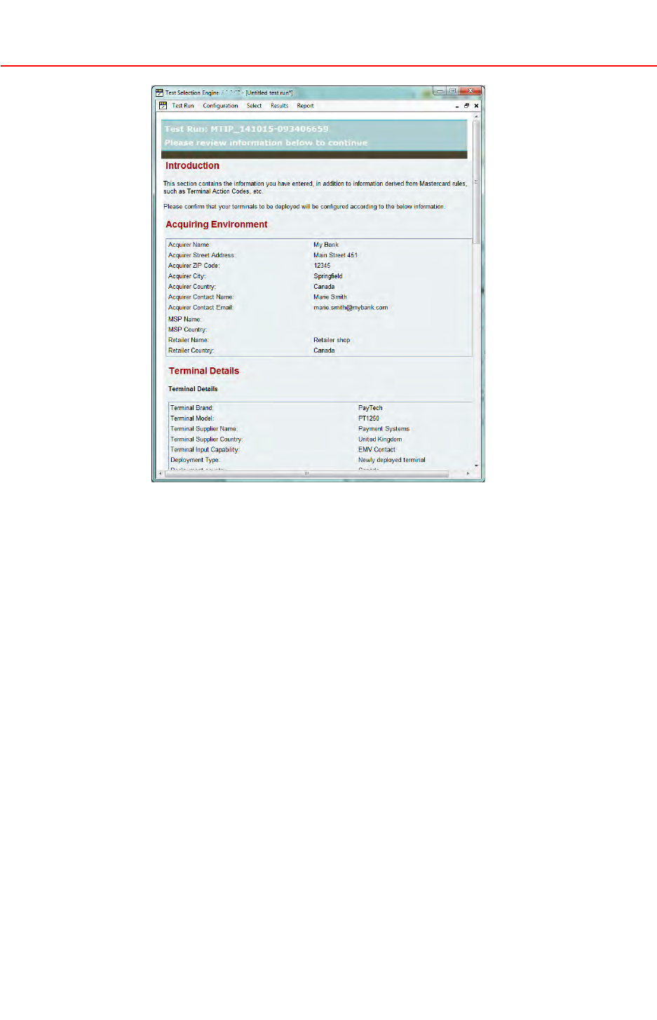 •TestInformation—Atestreportcontainingasummaryoftheterminal