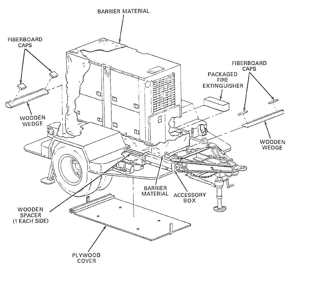 18352 TM 9 6115 653 14 And P POWER UNIT PU 732/M (NSN 00 260 3082) MEP 113A 15 KW 400 HZ GENERATOR SET M200 2 WHEEL, 4 TIRE, MODIFIED TRAILER