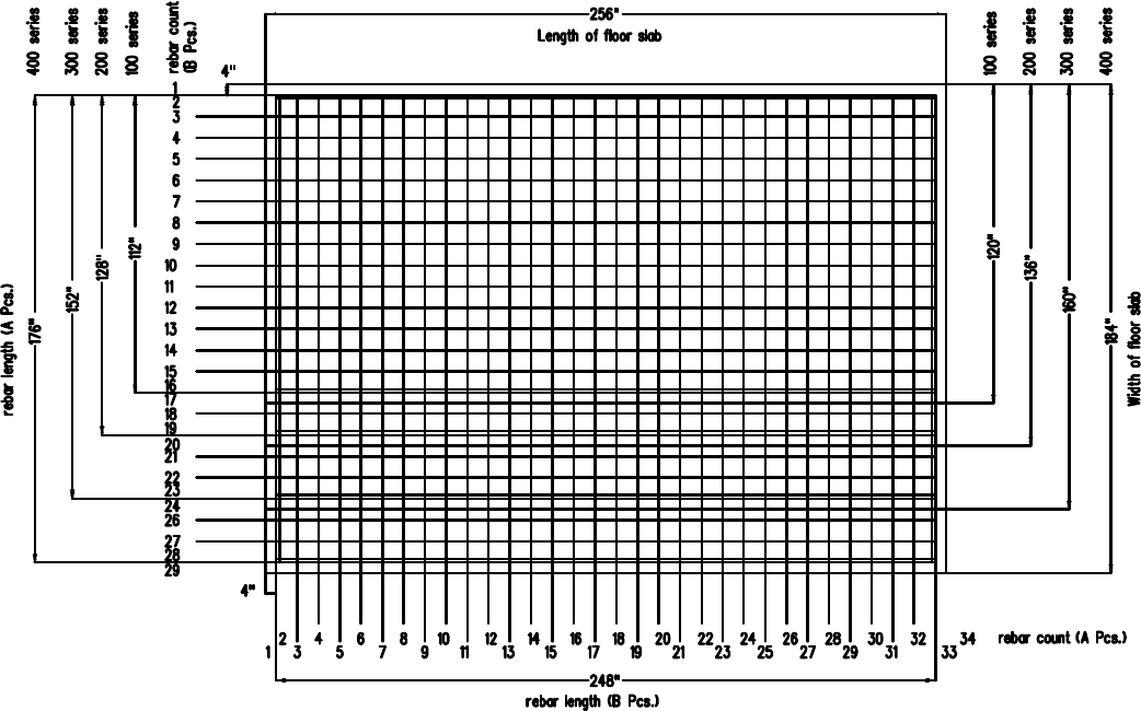 R1B = 16 pcs. #4 bar x 248” lg.