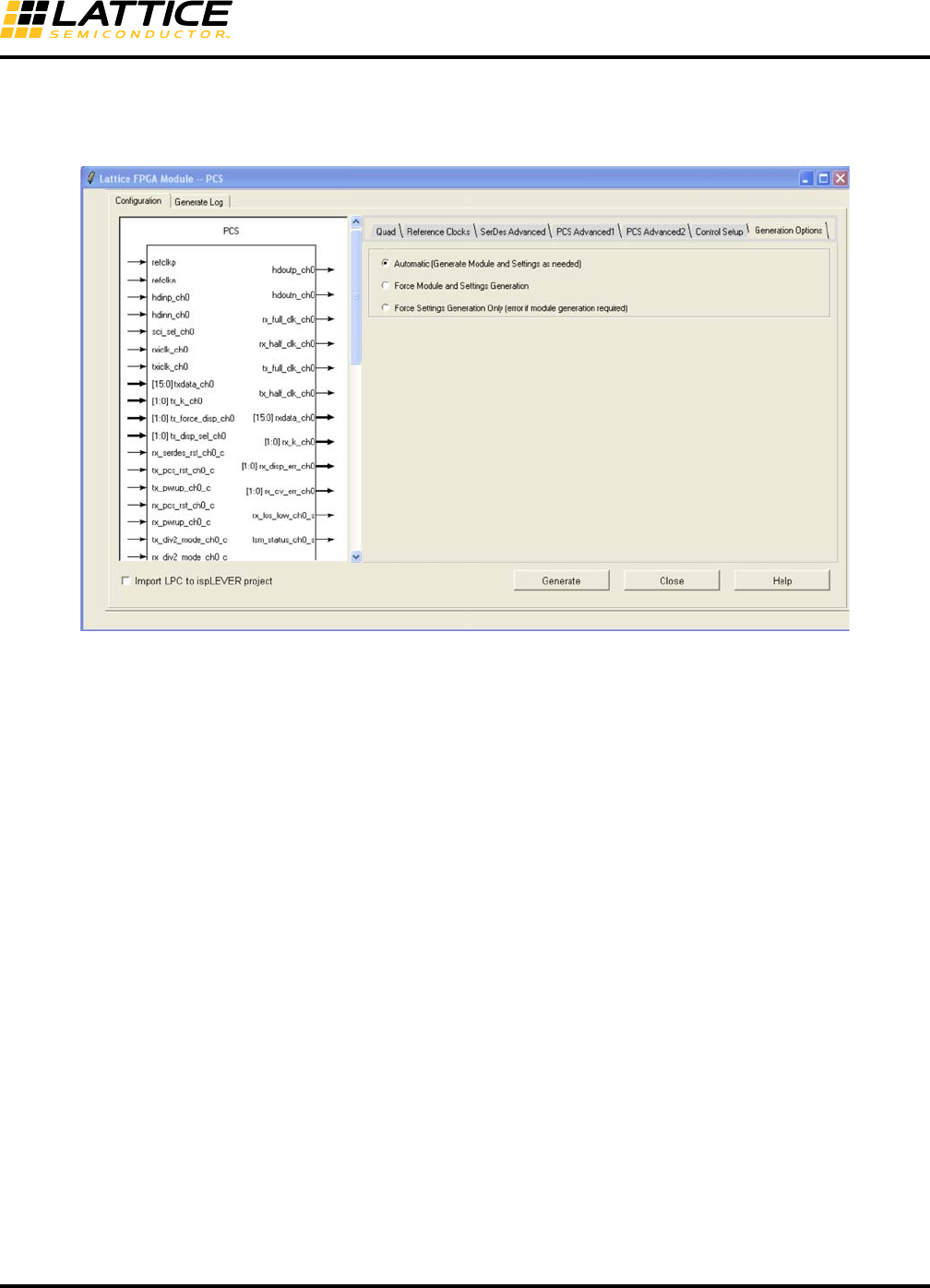 The configuration GUI tabs are all the same except for the Generation Options tab. Figure 8-57 shows the Genera-