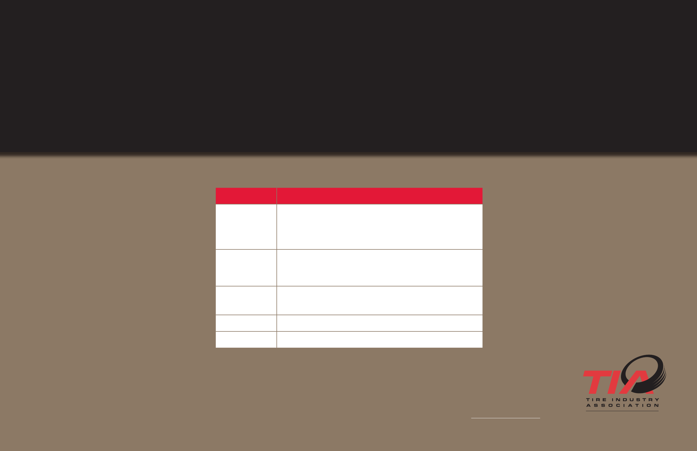 This Tire Industry Association (TIA) publication reflects the consensus of tire and rubber industry experts, as well as TIA’s technical experts. This material provides voluntary education that