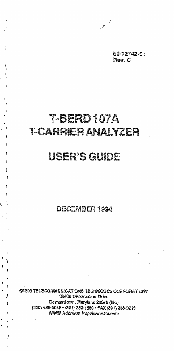 User Manual: TTC/TTC T-BERD 107A User