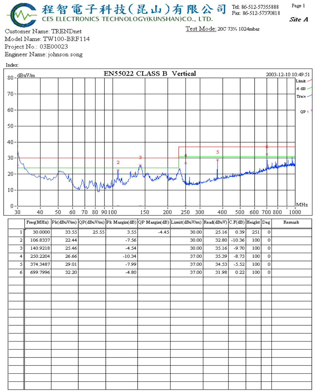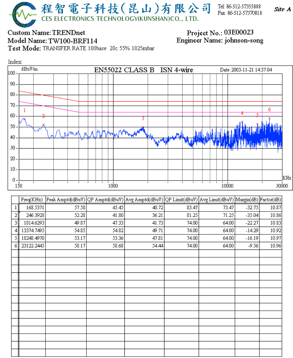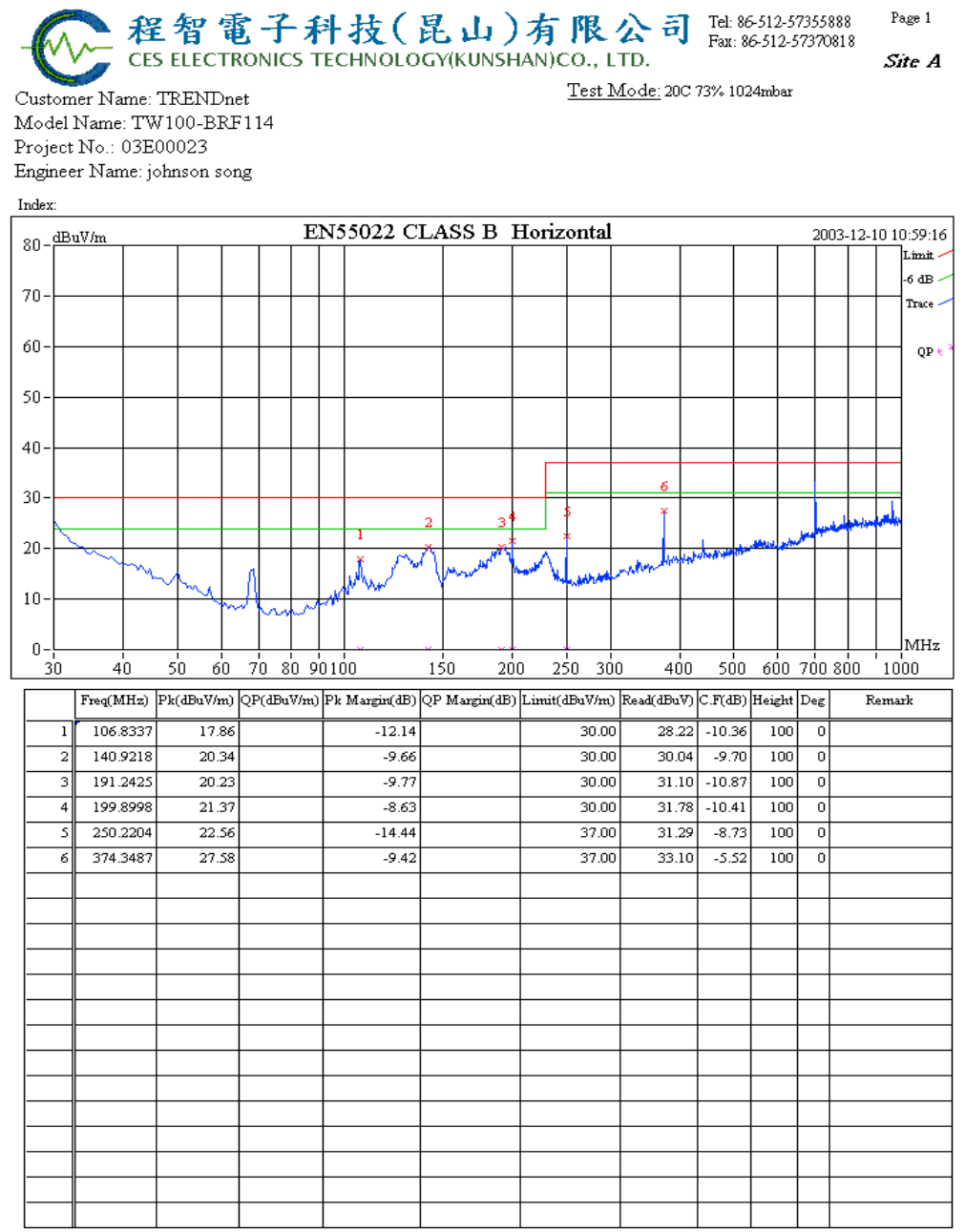 EMC COMPLIANCE REPORT TW100 BRF114 CE