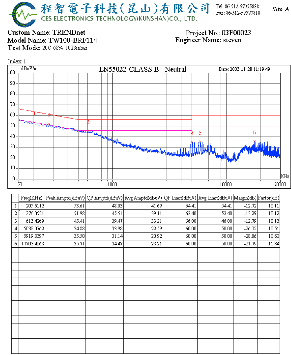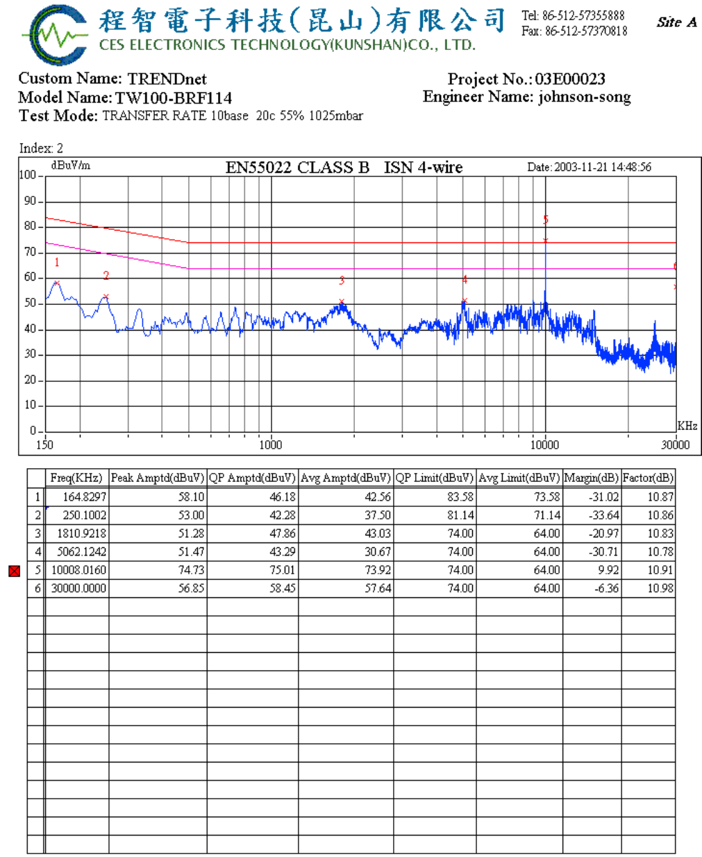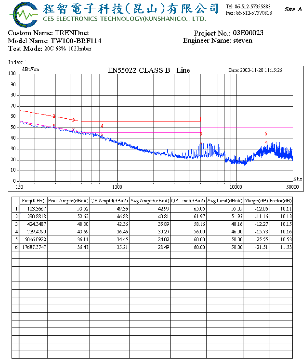 EMC COMPLIANCE REPORT TW100 BRF114 CE