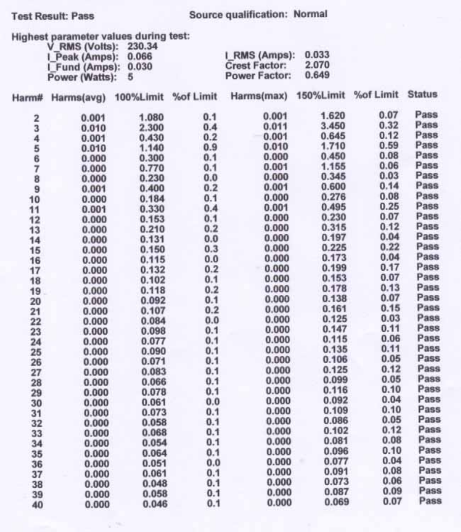EN 61000-3-2: 1995 + A1: 1998 + A2: 1998 + A14: 2000