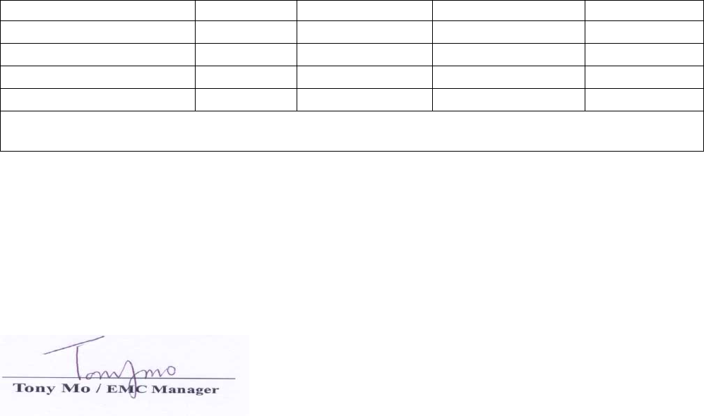 Test Item Freq.(MHz) Measured data Margin (MµC) Remark