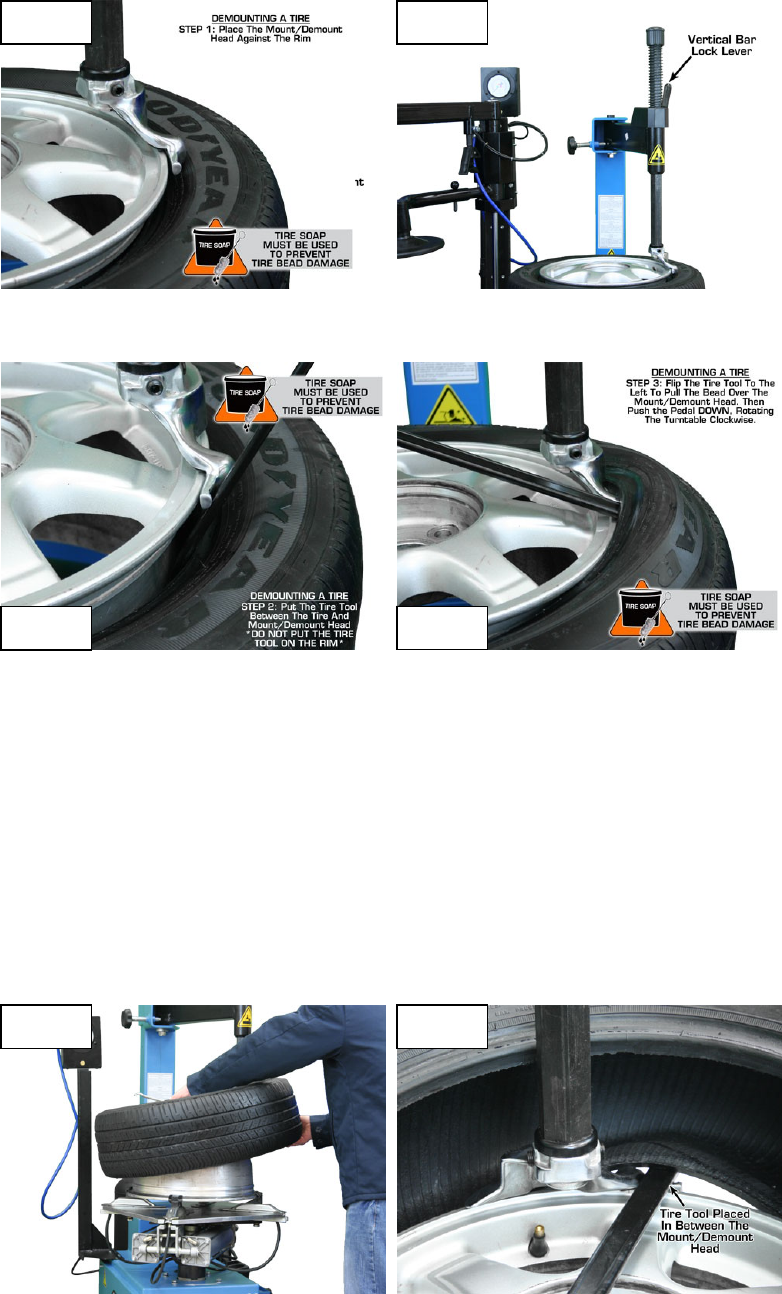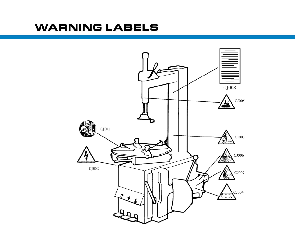 8) PAY ATTENTION AT ALL TIMES WHEN OPERATING THE TIRE CHANGER. DO