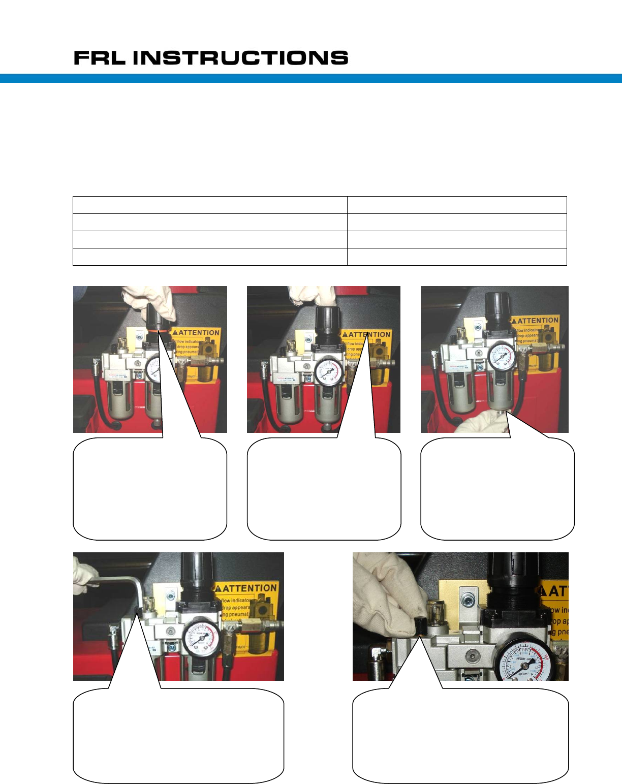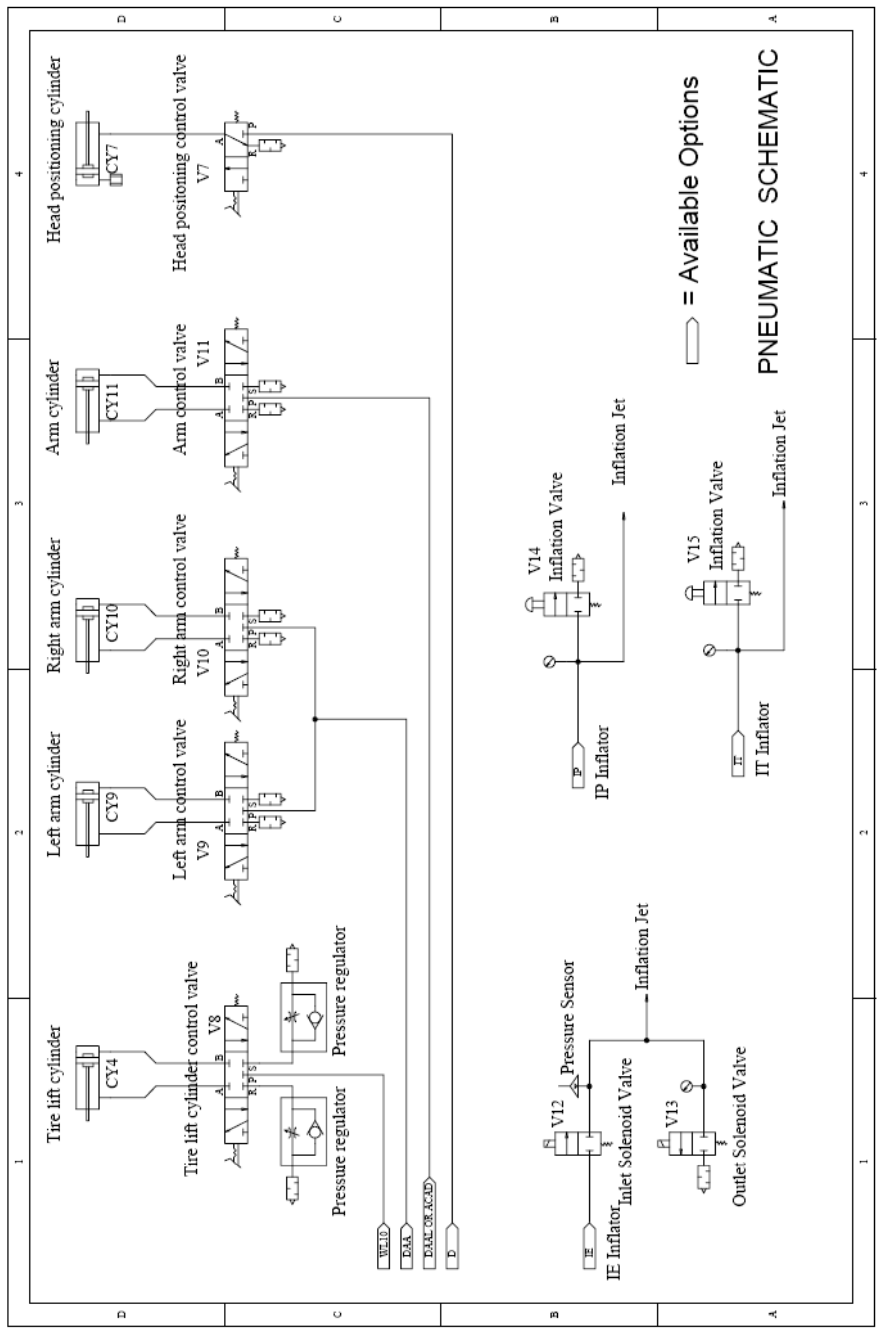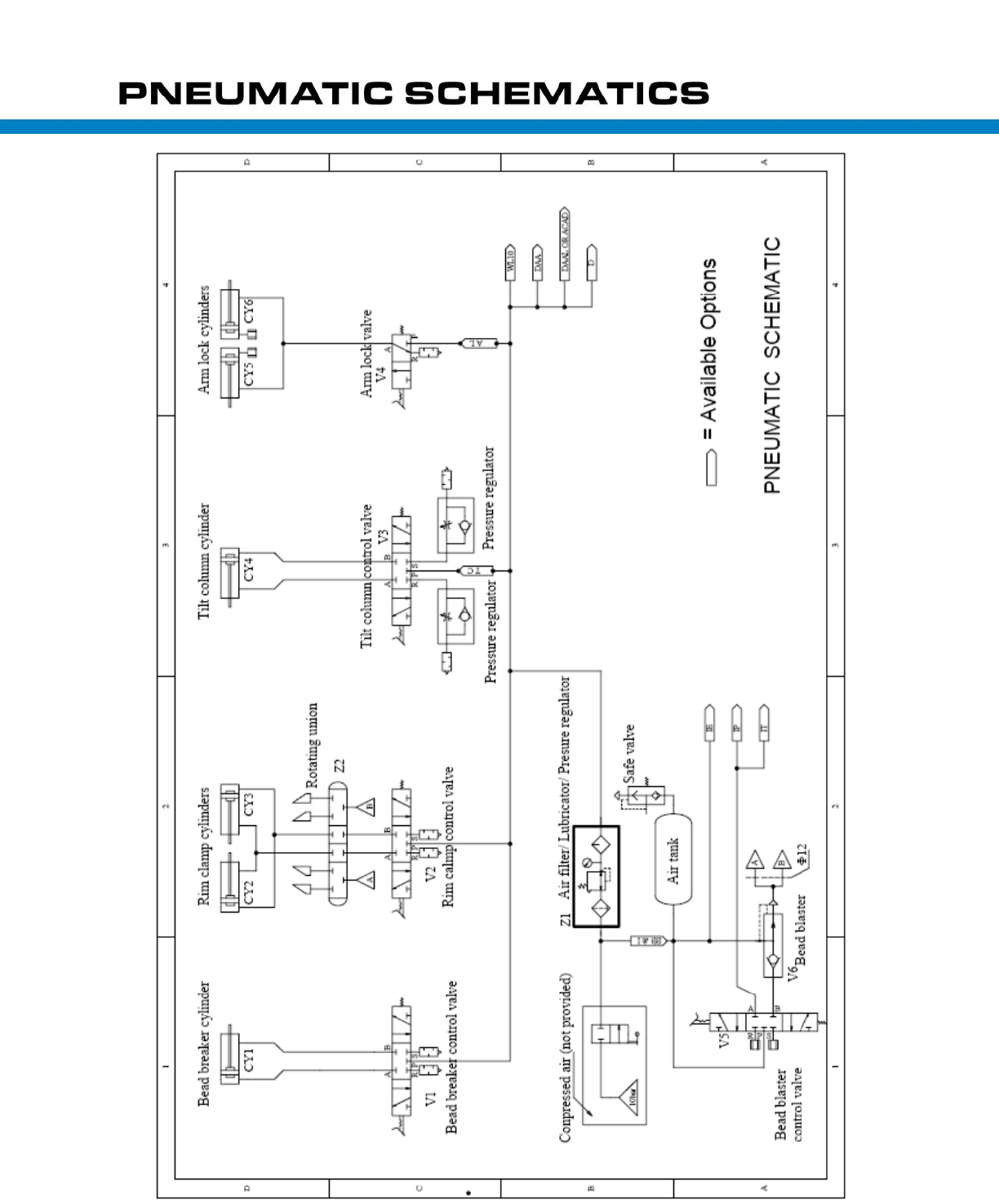 AIR SUPPLY SYSTEM OF THE TIRE CHANGER. ALL COMPRESSED AIR MUST BE