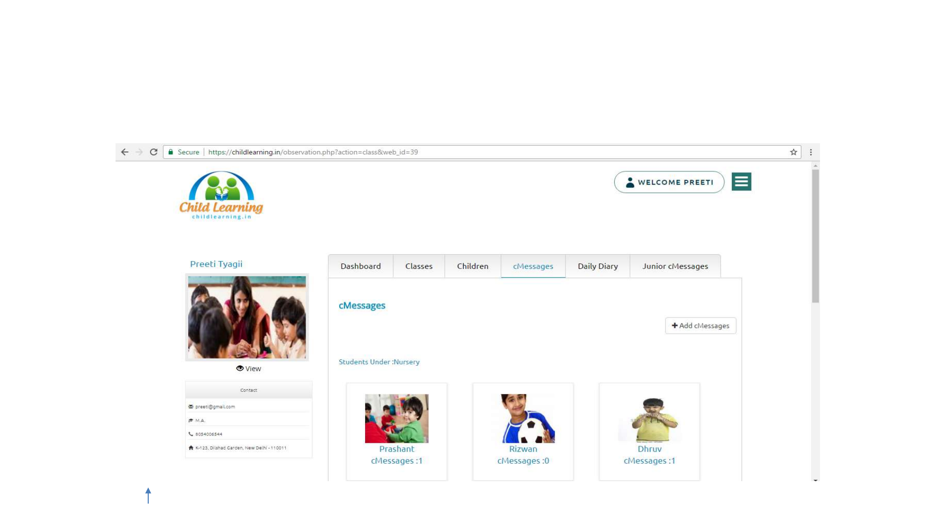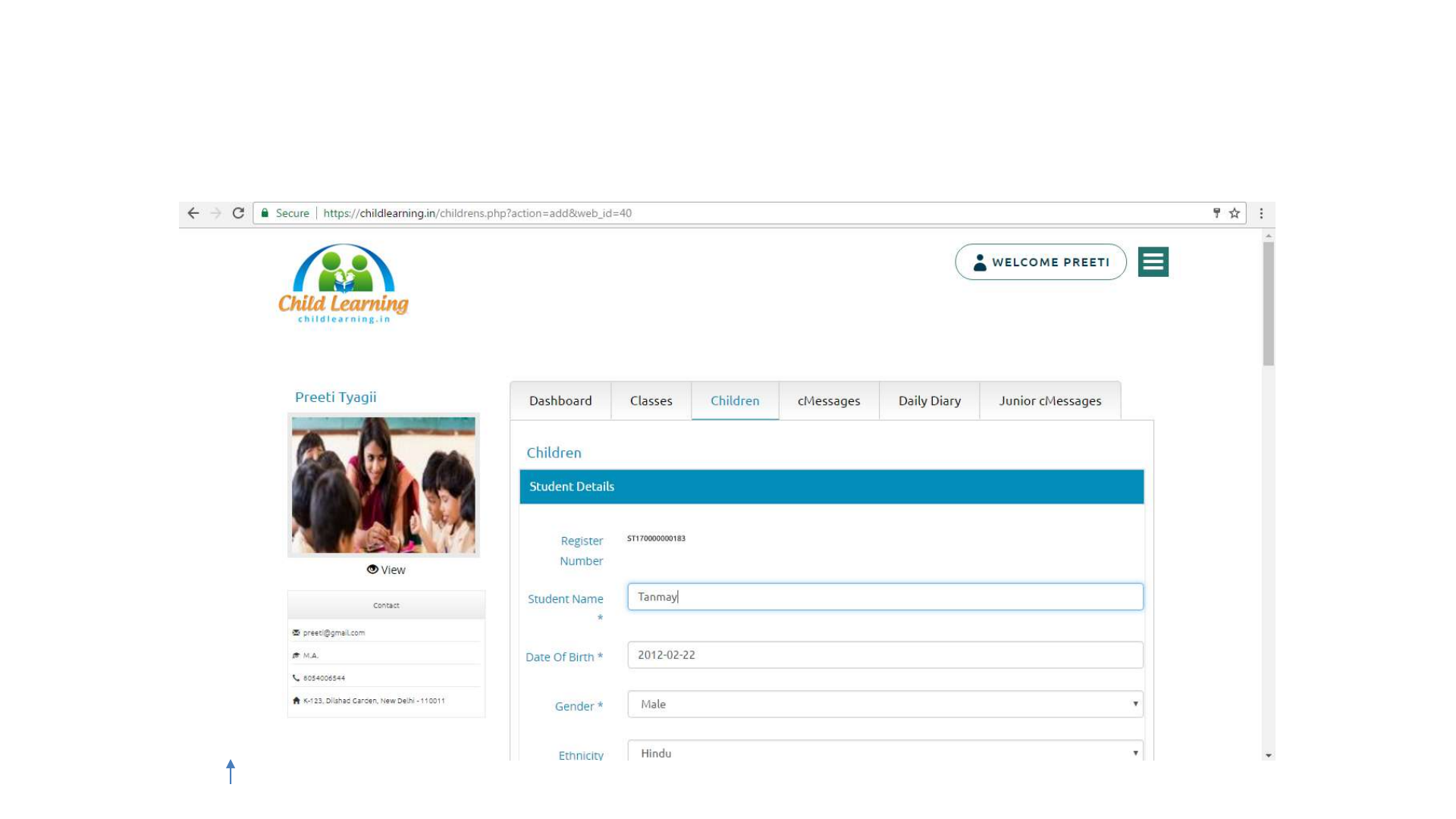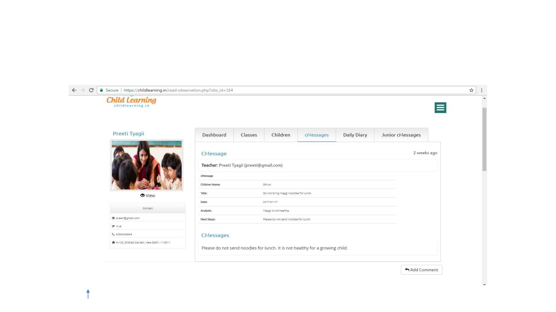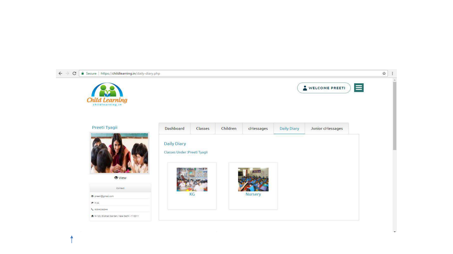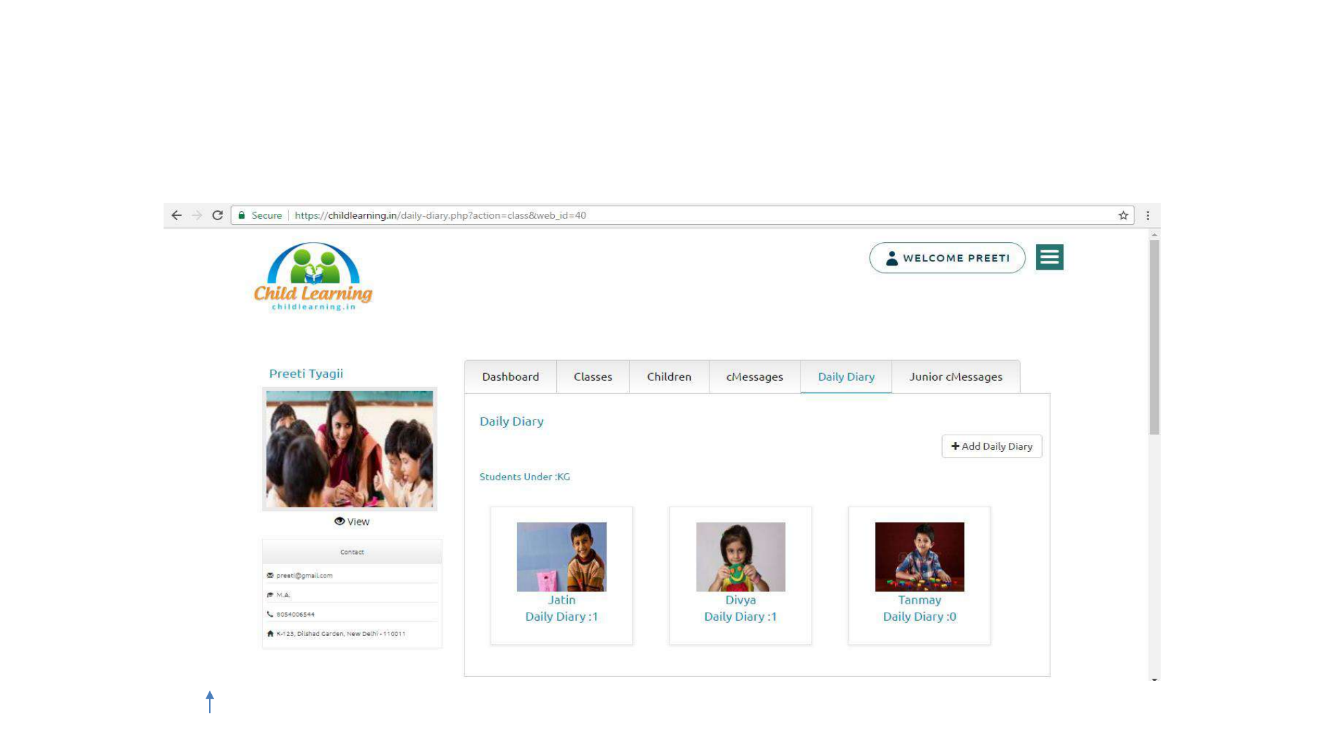 a child, adding a daily dairy for a child. Teacher can be senior or junior.